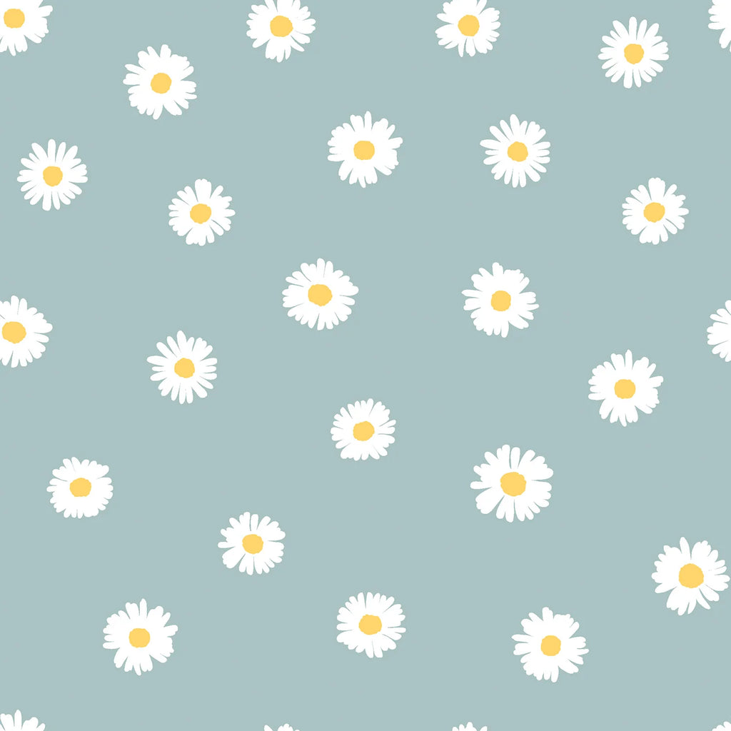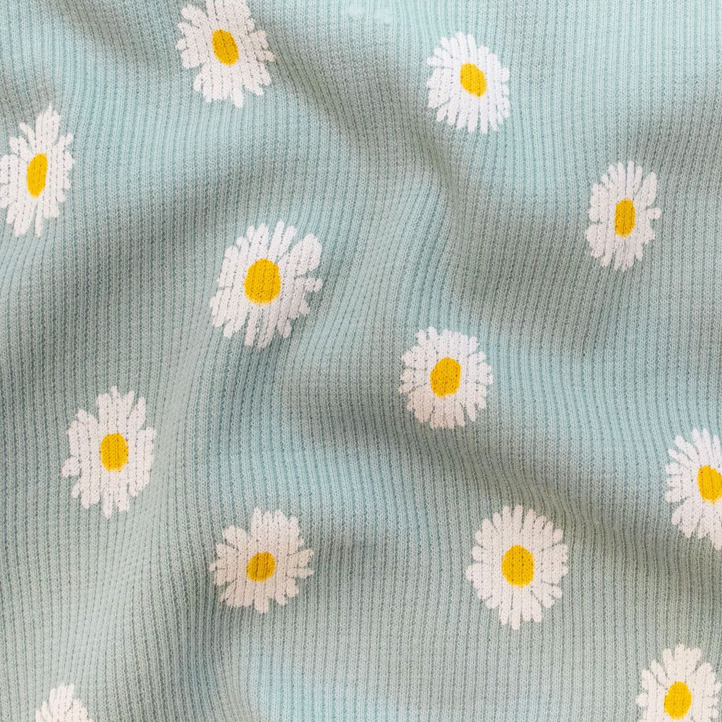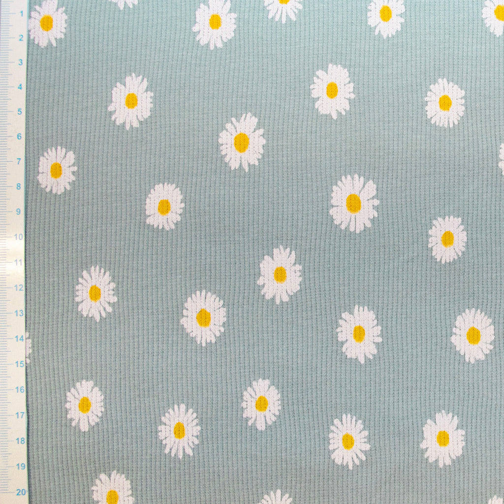 🌼 Ripp-Jersey Stoff Digitaldruck - Gänseblumen - Babyblau