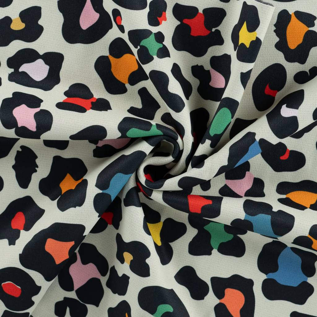 Tauche ein in den verspielten Charme unseres Alpenfleeces mit Leo Animalprint! Auf sandfarbenem Hintergrund tanzen bunte Leopardenprints in Orange, Blau, Grün, Rot und Gelb, die jedem Outfit einen lebhaften Akzent verleihen. Kuschelig weich und farbenfroh bringt dieser Stoff Spaß und Stil in deine Nähprojekte!