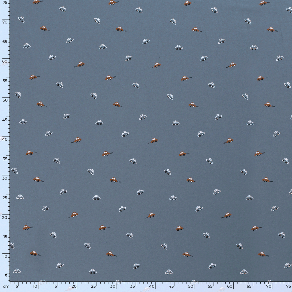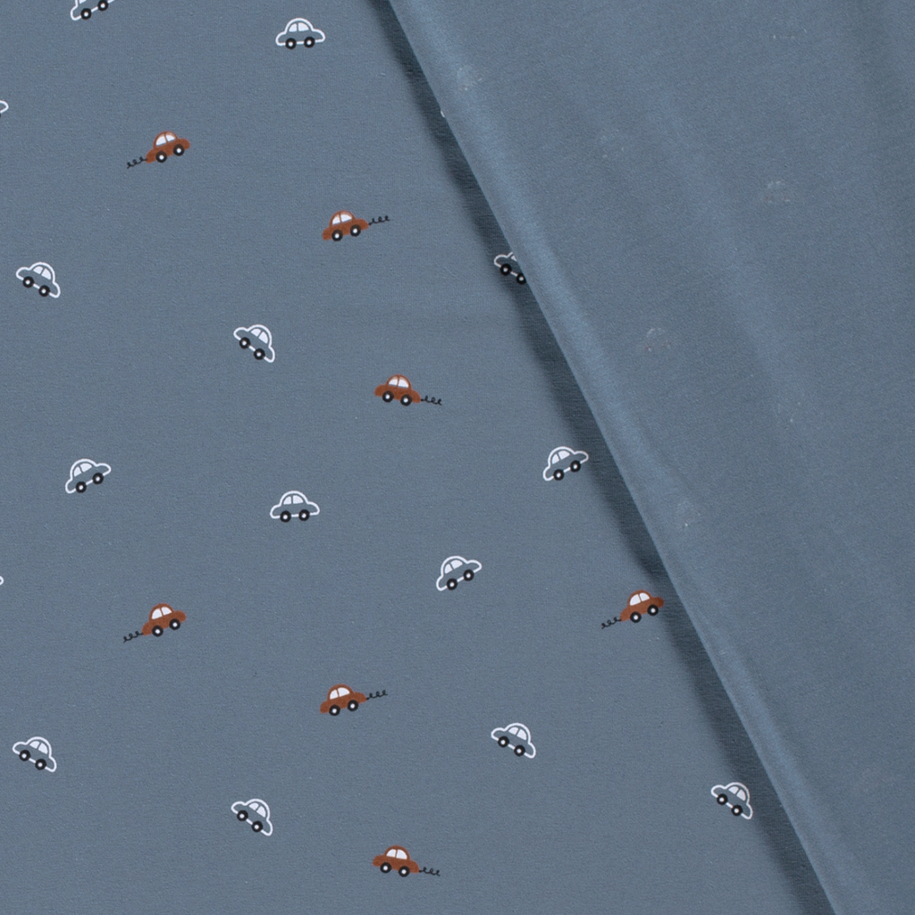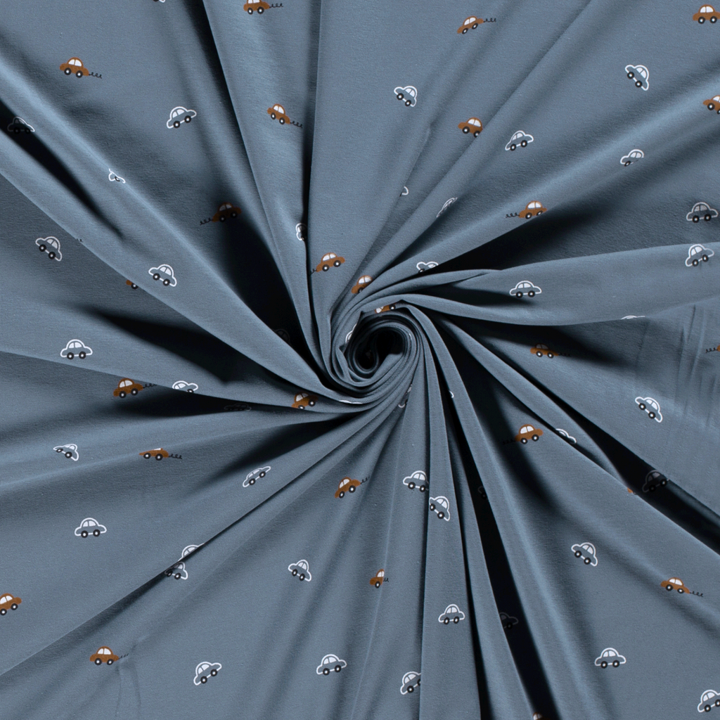 Dieser fröhliche Baumwolle Jersey mit Digitaldruck zeigt bunte Autos auf einem tiefen indigoblauen Hintergrund. Der weiche und dehnbare Stoff eignet sich perfekt für kreative Projekte wie Kinderkleidung oder kuschelige Accessoires, die Spaß und Farbe in jeden Look bringen.