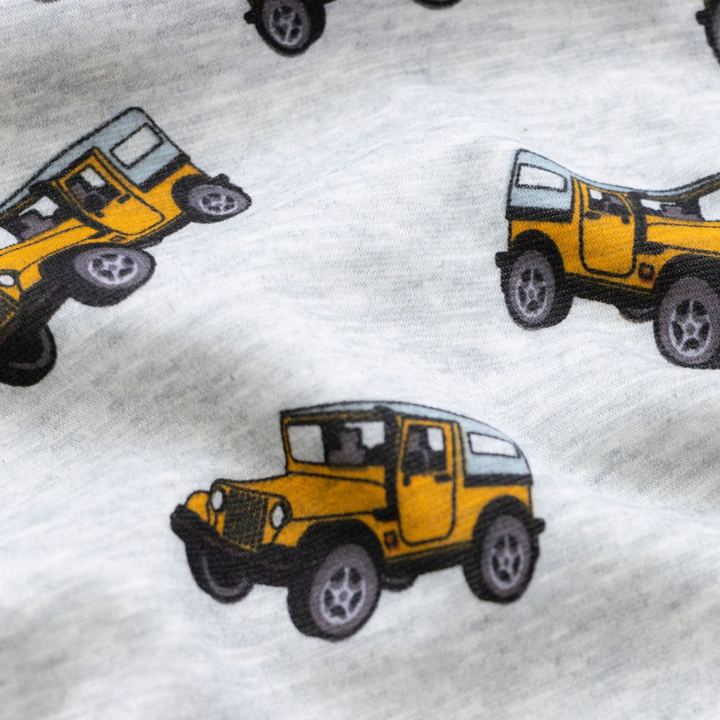 Dieser Alpenfleece Melange hat eine melierte graue Farbe und ein einzigartiges grünes Geländewagen-Muster. Der hochwertige Stoff bietet optimalen Komfort und Wärme für jedes Abenteuer in den Bergen. Ideal für Outdoor-Aktivitäten und stilvolle Looks.