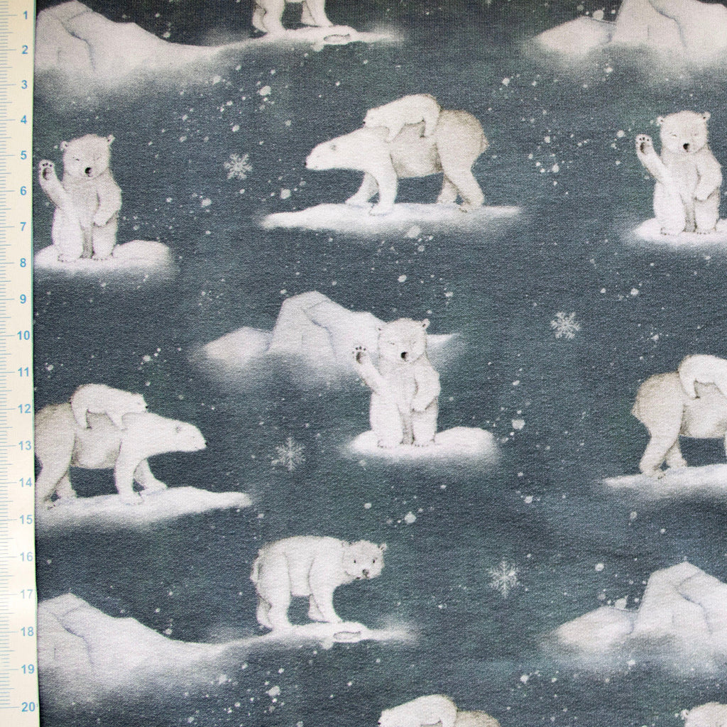 Hochwertiger Sweat aus der exklusiven Kollektion "Beyond Nordic" von Christiane Zielinski. Der angeraute Stoff besticht durch seine samtige Oberfläche und angenehme Griffigkeit. Das charmante Eisbären-Motiv auf rauchblauem Grund verleiht Projekten eine nordische Eleganz. Der Swafing-Stoff überzeugt mit stabiler Verarbeitung und eignet sich hervorragend für Kinderkleidung, Hoodies und gemütliche Accessoires. Die hochwertige Qualität garantiert Langlebigkeit und Tragekomfort.