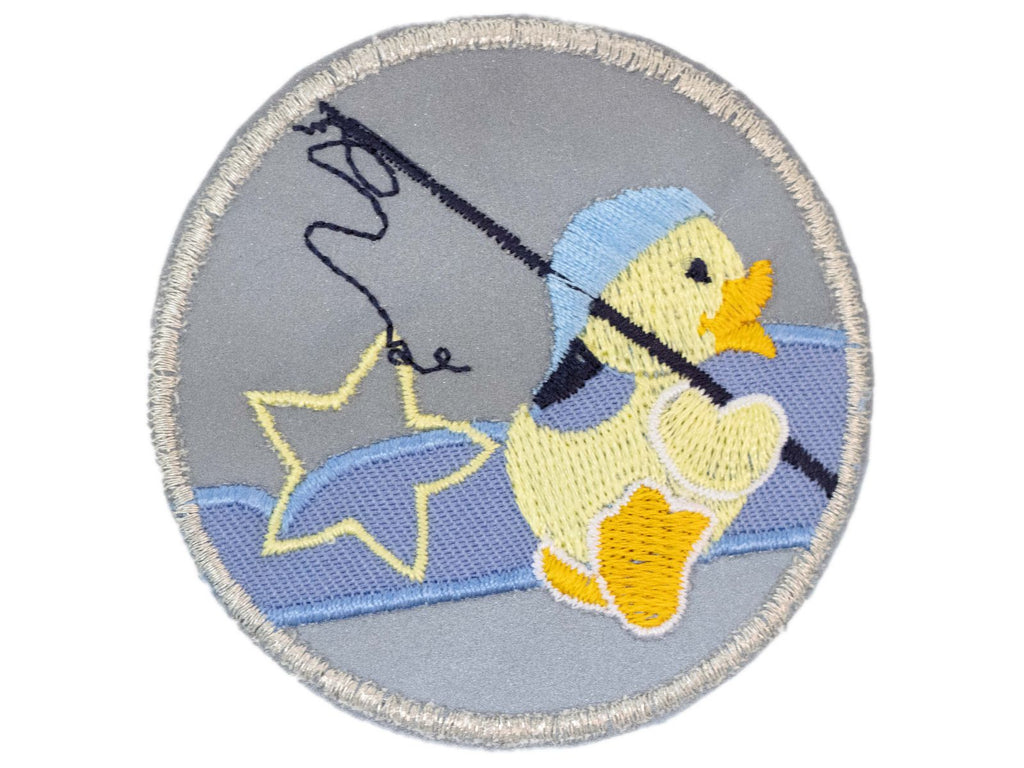 Reflektierende Aufbügel-Applikation mit verspieltem Enten-Motiv für optimale Verkehrssicherheit. Das reflektive Material wirft Licht zuverlässig zurück und macht Träger bei Nacht oder Dämmerung sofort sichtbar. Das charmante Design einer Angel haltenden Ente in Grau spricht besonders Kinder an und verleiht Kleidungsstücken, Taschen und Rucksäcken einen liebevollen Touch. Die Applikation haftet dauerhaft nach dem Aufbügeln – keine Nähkenntnisse notwendig. Perfekt für die Kombination aus Sicherheit und ansprechendem Design im Kinderbereich.