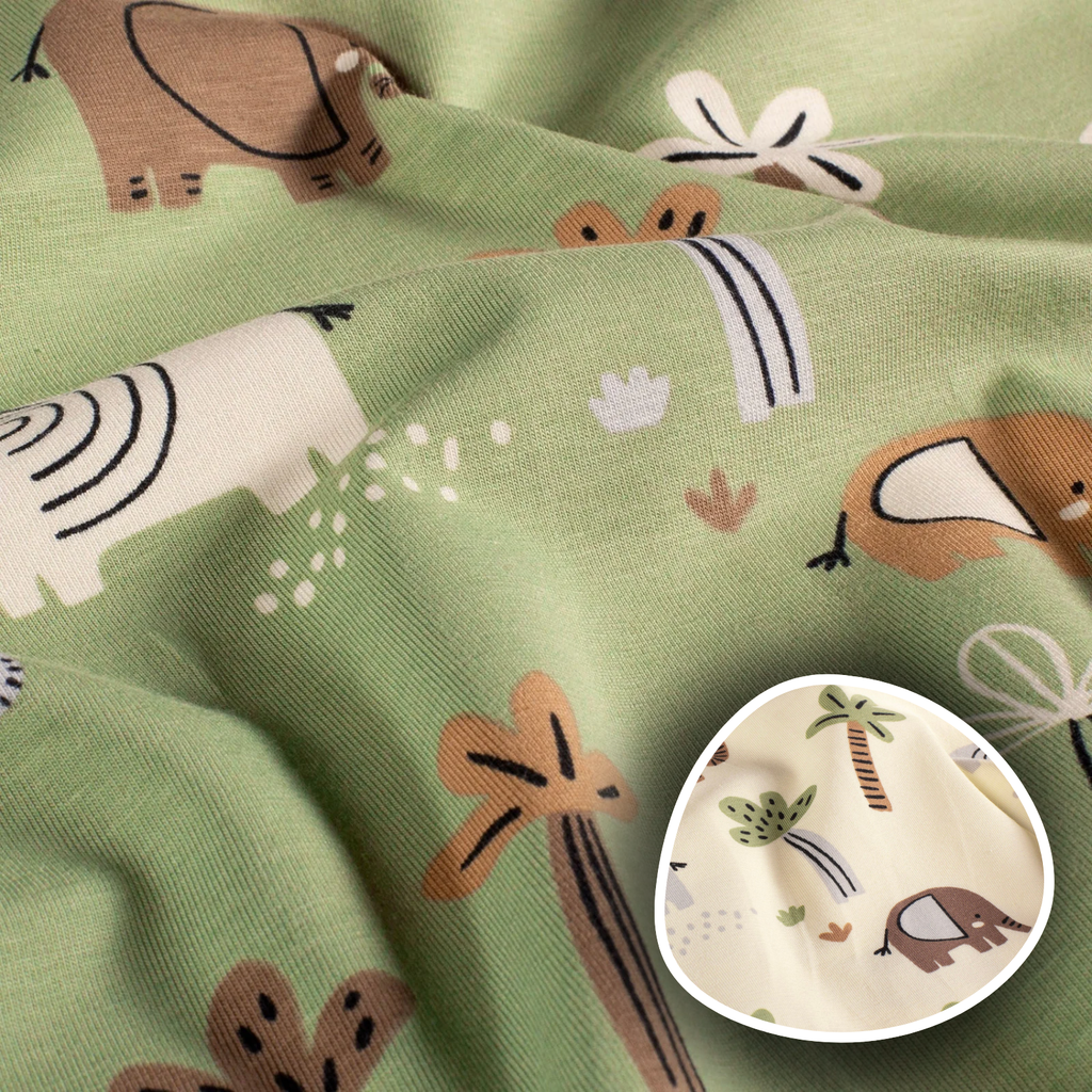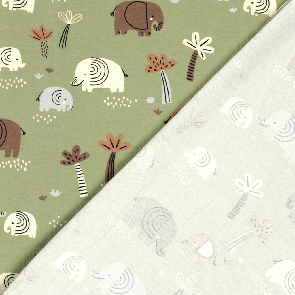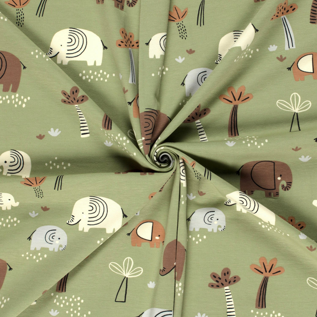 Dieser olivgrüne Baumwoll-Jersey mit buntem Elefanten-Digitaldruck bringt spielerischen Spaß in jede Kinderkleidung. Das weiche, atmungsaktive Material sorgt für angenehmen Komfort, während die lebhaften Traktorenmotiven kleine Entdecker begeistern. Perfekt, um Kinderoutfits lebendig und fröhlich zu gestalten.