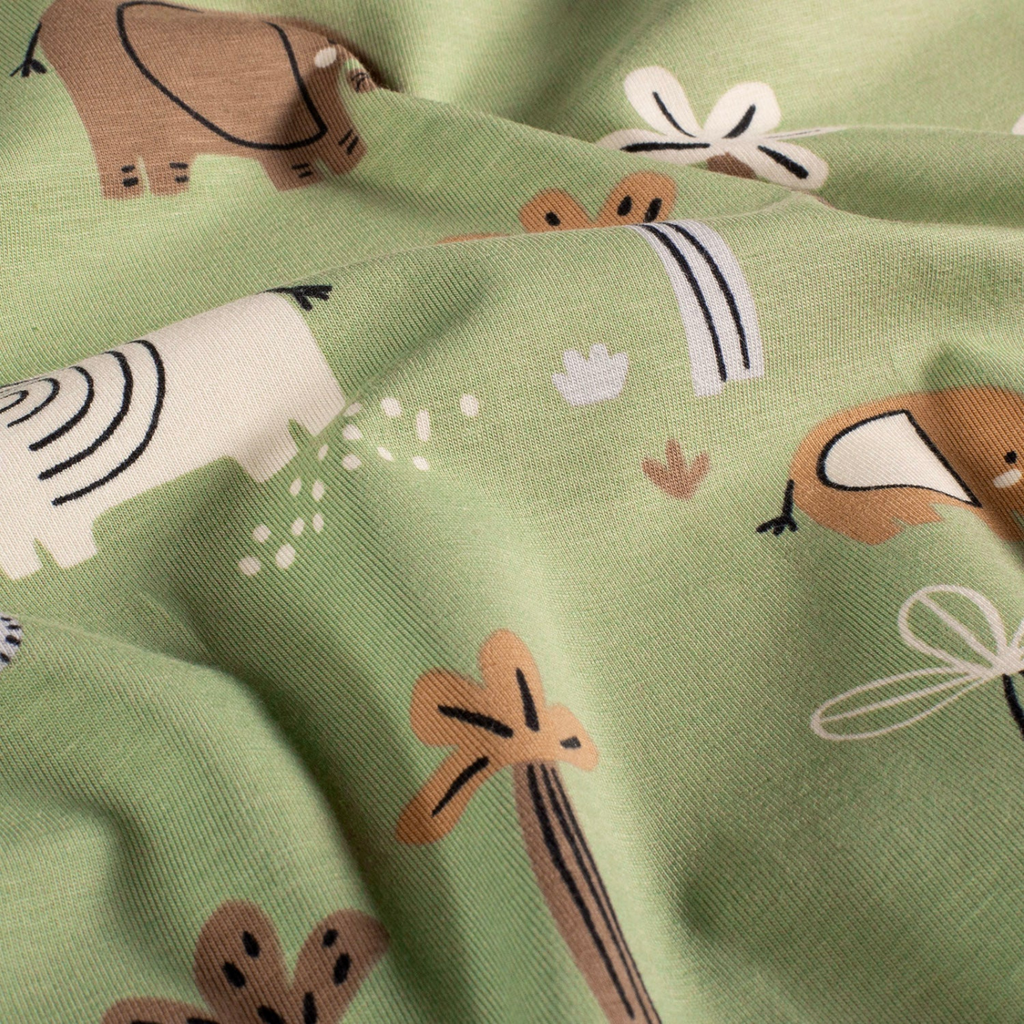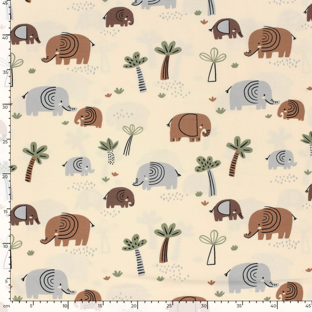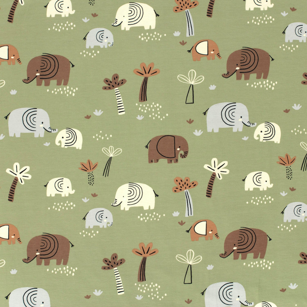 Dieser olivgrüne Baumwoll-Jersey mit buntem Elefanten-Digitaldruck bringt spielerischen Spaß in jede Kinderkleidung. Das weiche, atmungsaktive Material sorgt für angenehmen Komfort, während die lebhaften Traktorenmotiven kleine Entdecker begeistern. Perfekt, um Kinderoutfits lebendig und fröhlich zu gestalten.