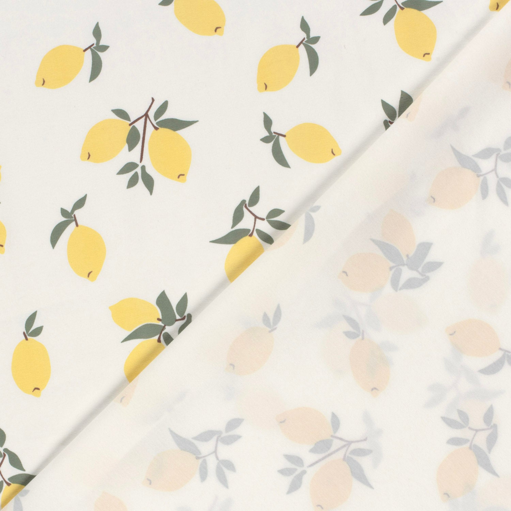 Bringen Sie mit diesem fröhlichen Baumwolle Jersey Digitaldruck in wollweiß mit spritzigen Zitronenfrüchten eine sonnige Note in Ihre Nähprojekte. Der weiche, elastische Stoff sorgt für angenehmen Tragekomfort und macht Ihre Kleidung oder Accessoires zum echten Gute-Laune-Macher. Perfekt, um kreative und lebendige Designs zum Leben zu erwecken!