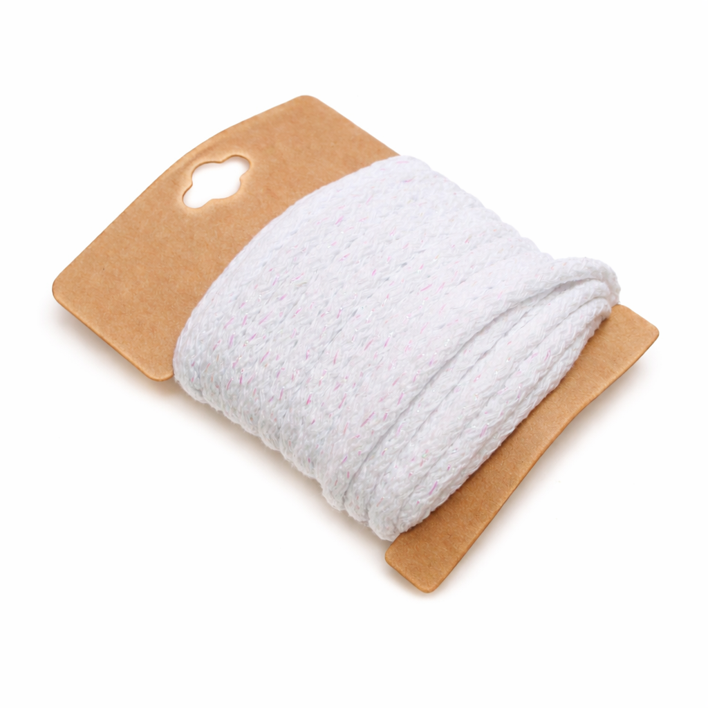 Funkelnde Baumwollkordel für deine kreativen Projekte! Diese glitzernde Kordel mit 5 mm Durchmesser bringt Glamour in jedes Handwerk – ob beim Verpacken von Geschenken, Basteln oder Schmuckdesign. Der feine Glitzereffekt sorgt für einen edlen Glanz, während die hochwertige Baumwolle für Stabilität und Haltbarkeit garantiert. Mit 5 Metern pro Coupon hast du genug Material für mehrere Projekte. Perfekt für alle, die ihren Kreationen das gewisse Etwas verleihen möchten!