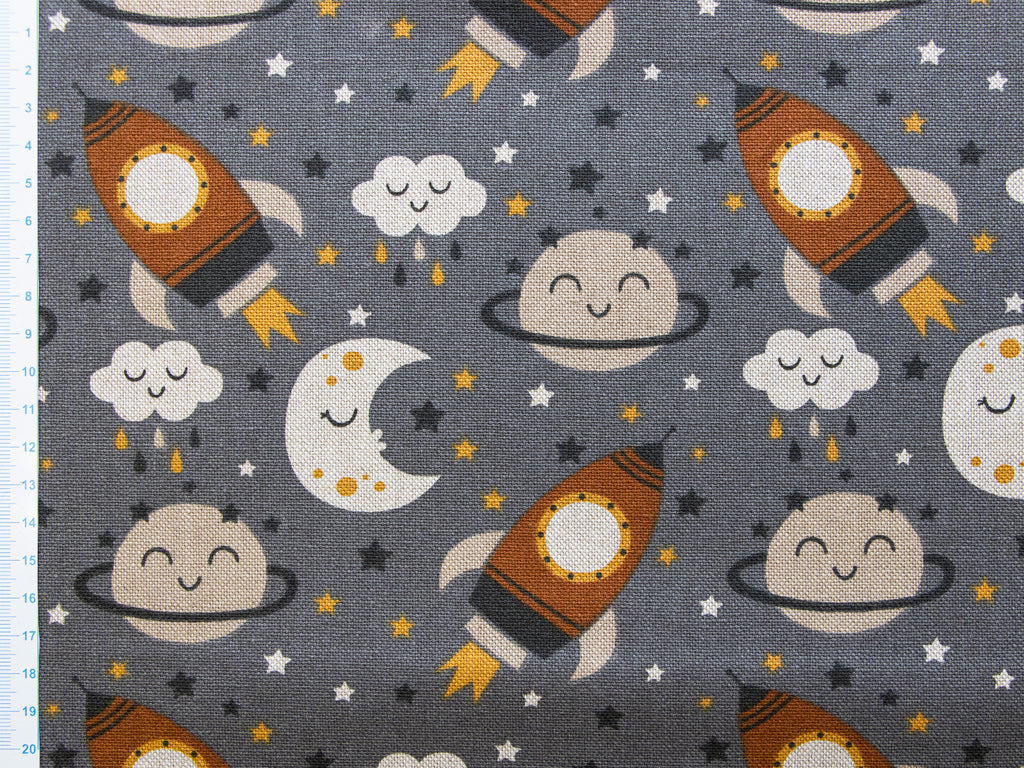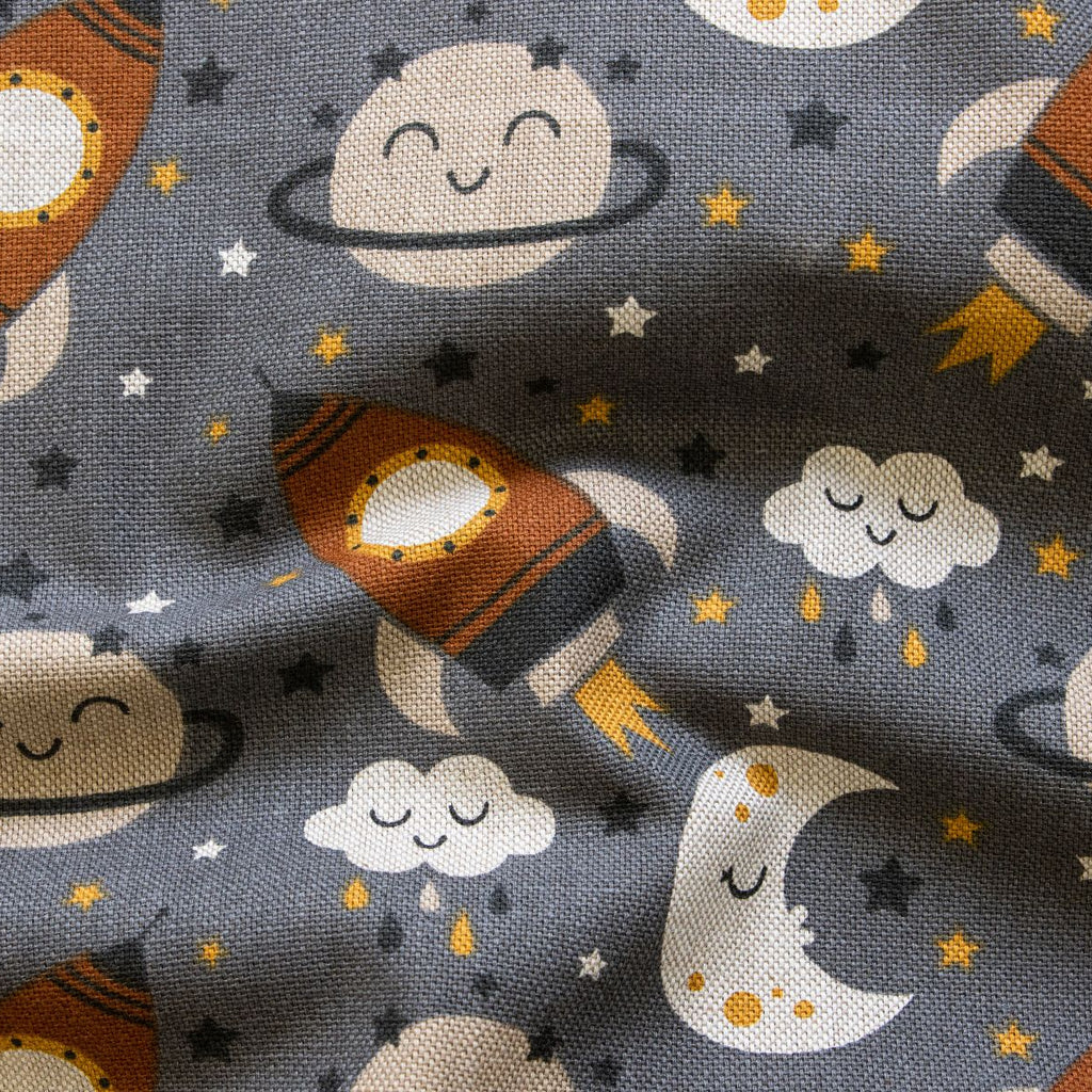 Canvas in Leinenoptik mit charmanten Raketen- und Weltall-Motiven – ideal für Kinderprojekte. Dieser robuste Baumwollstoff vereint Spielfreude mit praktischer Haltbarkeit und eignet sich perfekt für Kinderkleidung, Taschen und Dekoration. Die feine Leinenoptik verleiht dem Design Struktur und Tiefe, während die leuchtenden Farben die Fantasie anregt. Pflegeleicht und langlebig – ein zuverlässiger Begleiter für kreative Nähprojekte im Kinderzimmer.