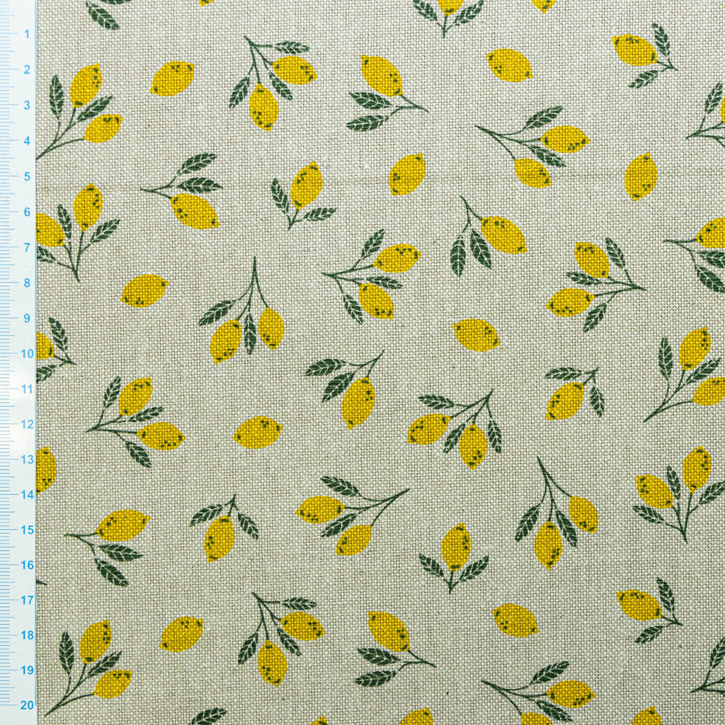 Dieser hochwertige Dekostoff besticht durch seine charakteristische Half-Panama-Bindung und authentische Leinenoptik. Das Zitronenzweig-Muster in natürlichen Tönen bringt mediterrane Leichtigkeit in jeden Raum – ideal für Vorhänge, Kissenbezüge oder Polsterprojekte. Die robuste Baumwollmischung gewährleistet Langlebigkeit und einfache Pflege. Mit seinem zeitlosen Design verbindet dieser Stoff sommerliche Frische mit klassischer Eleganz und schafft eine entspannte Atmosphäre, die an südländische Gärten erinnert.