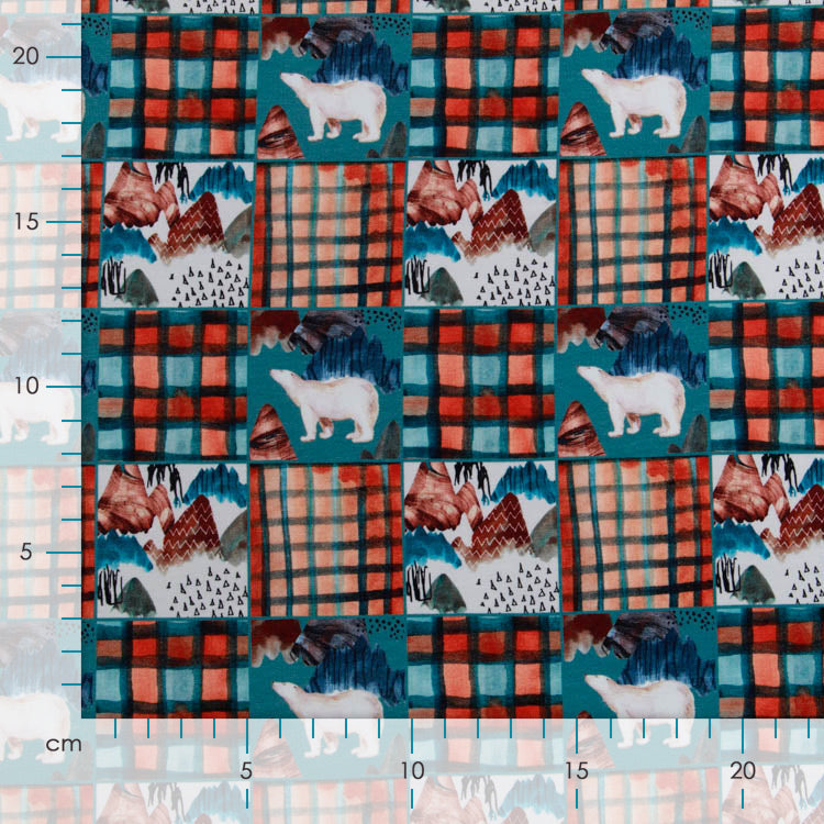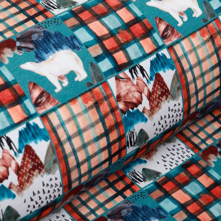 French Terry Digitaldruck mit verspielten Eisbären auf klassischem Karomuster in Petrol – ein zeitloser Klassiker für die Wintergarderobe. Der strapazierfähige, atmungsaktive Stoff bietet optimalen Tragekomfort und eignet sich hervorragend für Sweatshirts, Pullover und Freizeitkleidung. Die harmonische Farbkombination und das liebevolle Motivdesign sprechen Kinder an und lassen sich vielseitig kombinieren. Dank seiner robusten Qualität hält der Stoff auch intensiver Nutzung stand – eine zuverlässige Wahl für langlebige Kindermode.