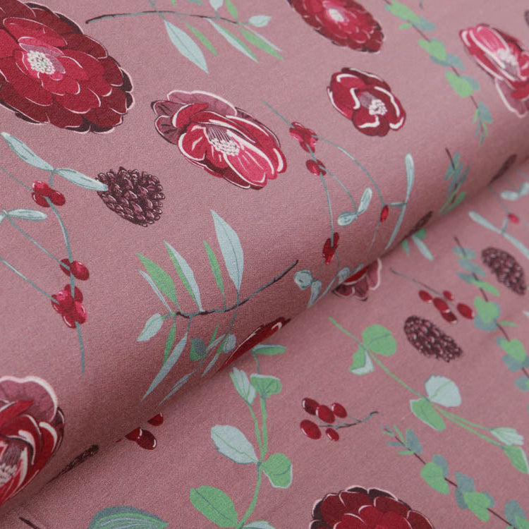 Dieser wunderbar weiche French Terry aus Modal-Mix ist ein echtes Lieblingsstück für gemütliche Tage! Das Design "Beeren und Tannenzapfen" von Bienvenido Colorido bringt herbstliche Wärme in zartem Altrosa – perfekt für Hoodies, Jogger oder kuschelige Loungewear. Die feine Swafing-Qualität sorgt für angenehmen Tragekomfort und natürliche Atmungsaktivität. Ideal für alle, die Nachhaltigkeit und Stil lieben!