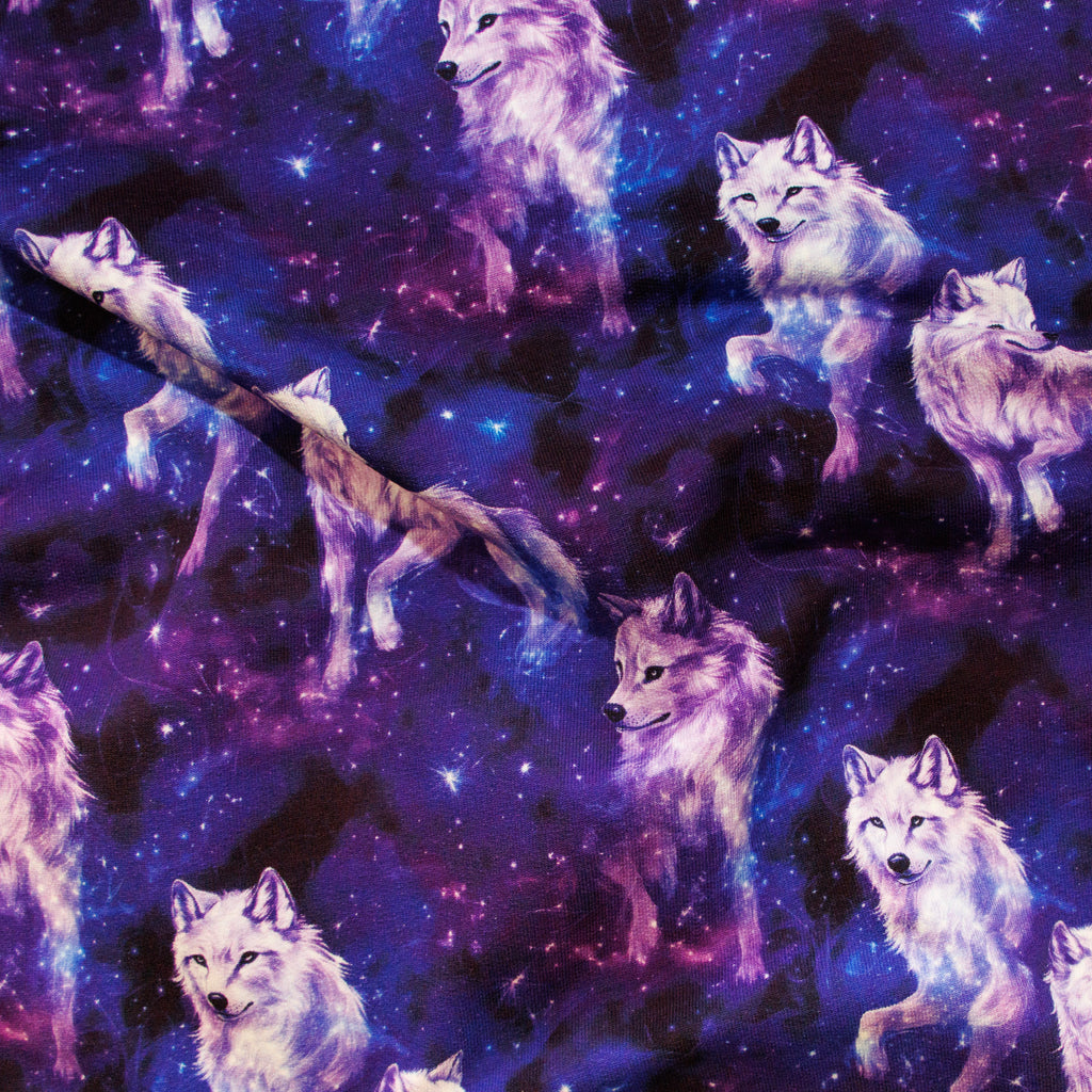 French Terry mit atemberaubendem Digitaldruck – perfekt für anspruchsvolle Nähprojekte. Das hochwertige Material besticht durch seine charakteristische Rückseite und angenehme Griffigkeit. Das Wolfs-Motiv in den Farbtönen Dunkelblau und Lila verleiht jedem Kleidungsstück eine moderne, ausdrucksstarke Optik. Der Digitaldruck sitzt präzise und farbecht auf dem Stoff. Ideal für Hoodies, Jogger und Freizeitkleidung – ein Statement-Stoff für kreative Näherinnen und Näher.