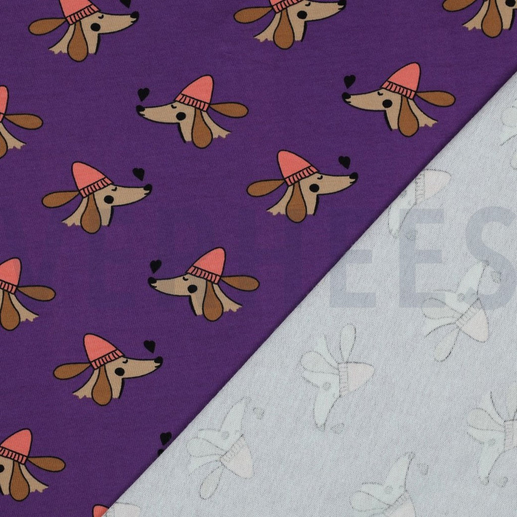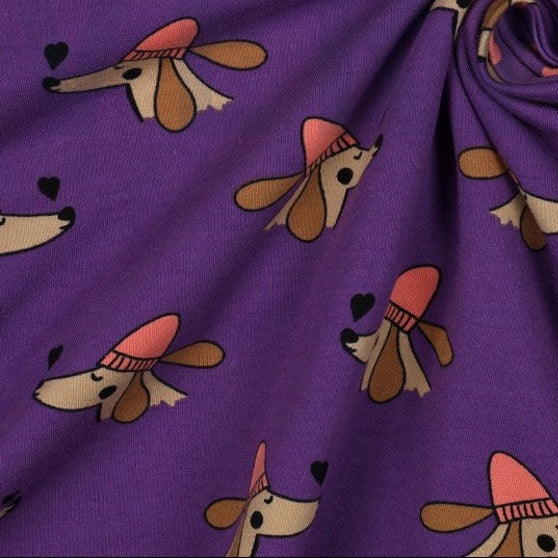 French Terry Stoff mit charmanten Hunde- und Herzenmotiven auf lila oder rotfarbenem Grund. Dieses hochwertige Material besticht durch seine weiche, flauschige Oberfläche und angenehme Elastizität – ideal für Kinderkleidung, Hoodies und Freizeitmode. Der French Terry bietet optimalen Tragekomfort und Bewegungsfreiheit. Die liebevollen Designs machen diesen Stoff zum perfekten Begleiter für verspielte Projekte. Vielseitig einsetzbar und pflegeleicht.