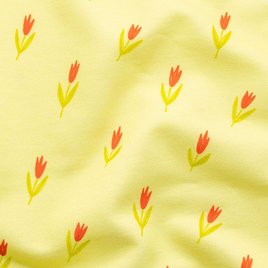 French Terry Swafing Femke besticht durch sein weiches, anschmiegsames Gewebe – ideal für komfortable Kinderkleidung. Das Tulpen-Muster in leuchtendem Sonnengelb verleiht jedem Projekt Fröhlichkeit und Lebendigkeit. Der hochwertige French Terry bietet optimale Bewegungsfreiheit und Atmungsaktivität, perfekt für Hoodies, Jogger und Freizeitkleidung. Die robuste Verarbeitung garantiert Langlebigkeit auch bei häufigem Waschen. Ein vielseitiger Klassiker für anspruchsvolle Nähprojekte im Kinderbereich.