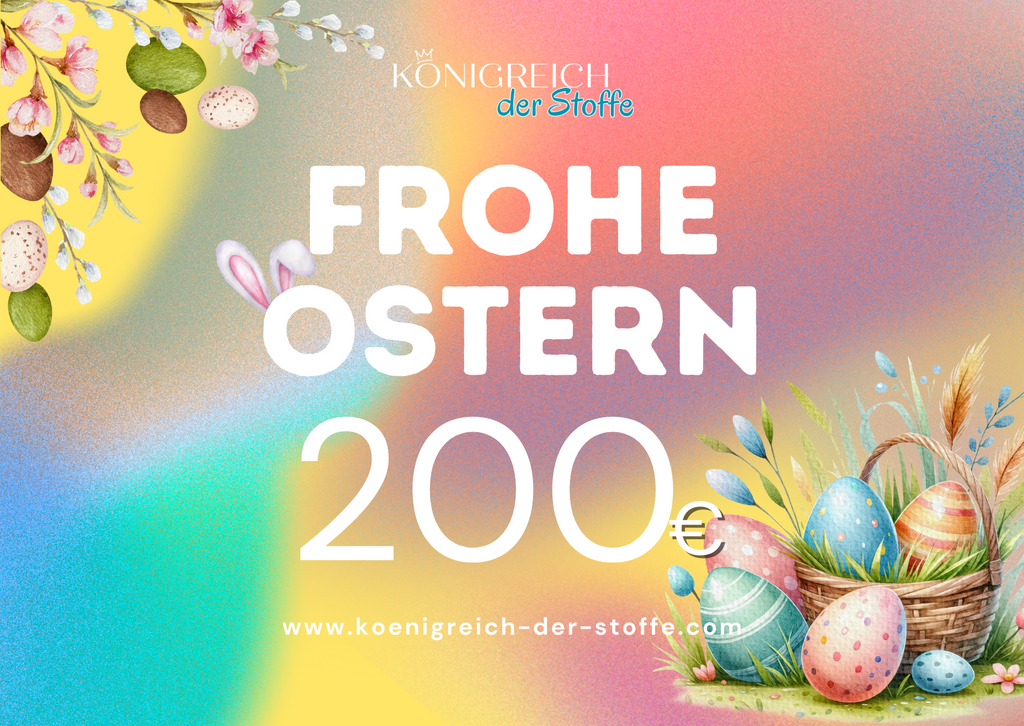 Mit unserem liebevoll gestalteten Oster-Gutschein bereitest du kreative Freude! Perfekt für alle, die Stoffe lieben und gerne nähen. Mit diesem Geschenkgutschein aus dem Königreich der Stoffe liegst du goldrichtig zu Ostern. Jetzt verschenken und Nähbegeisterte glücklich machen!