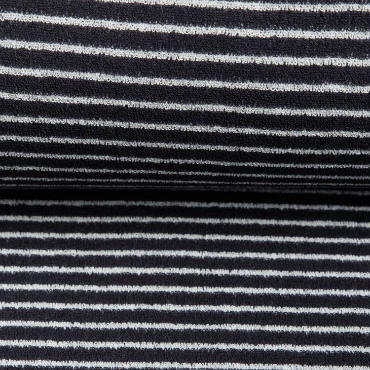 Flauschig, weich und immer eine gute Wahl – unser Frottee mit feinen Streifen in Anthrazit! Perfekt für Handtücher, die sich wie eine Umarmung anfühlen, oder für gemütliche Projekte, die Komfort versprechen. Die dezenten Streifen geben dem klassischen Grauton das gewisse Etwas, ohne dabei zu viel Aufhebens zu machen. Ob für Badezimmer, Küche oder kreative DIY-Ideen – dieser Stoff ist dein zuverlässiger Begleiter für alles, das kuschelig sein soll.