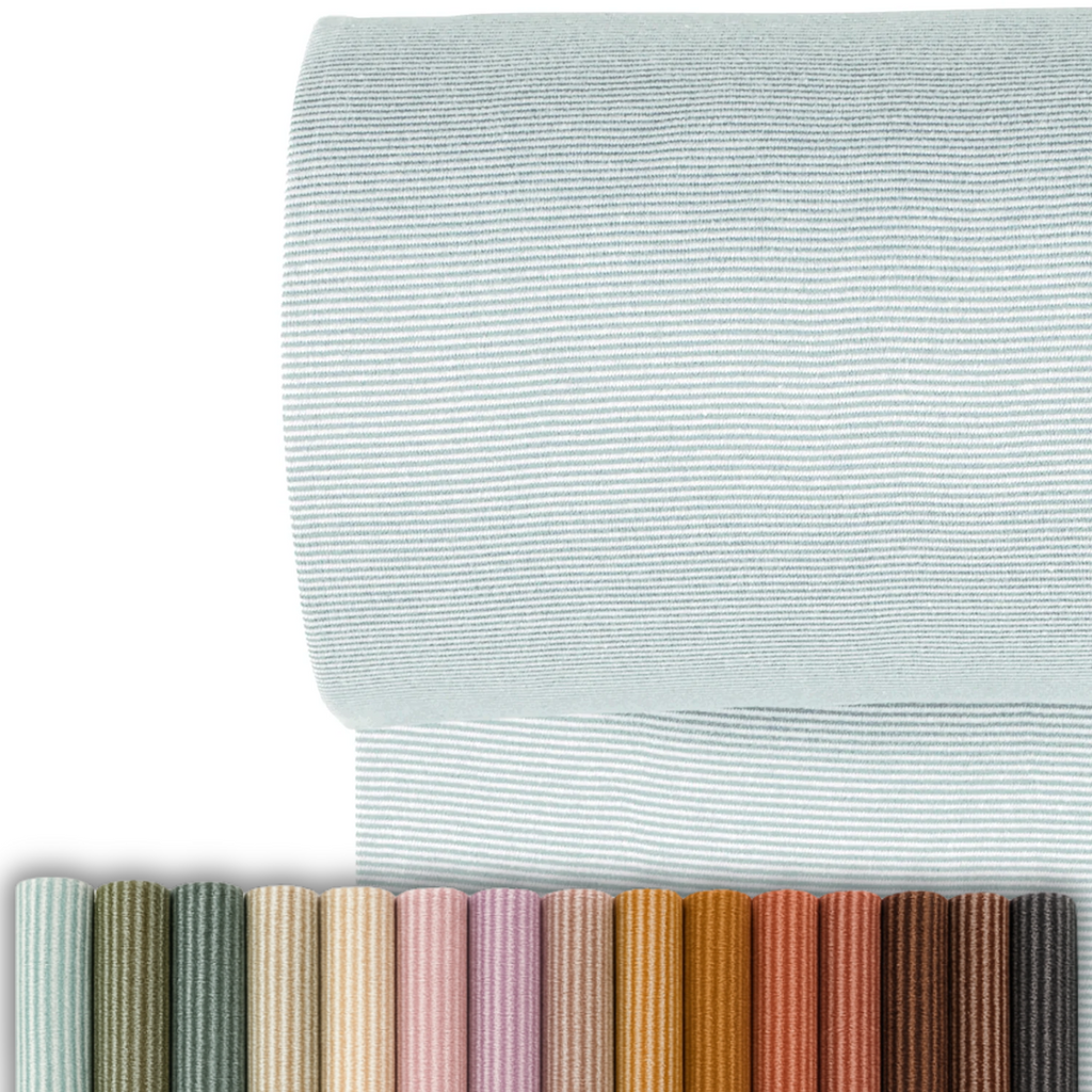 Dieses glatte Bündchen im Schlauch mit Streifenmuster ist 35 cm breit und entfaltet aufgeschnitten eine Breite von 70 cm. Es eignet sich ideal für vielfältige Nähprojekte aus unserer Babystoffe-Kollektion und bietet eine hochwertige, elastische Verarbeitung, die Komfort und Flexibilität garantiert. Perfekt, um Kleidung und Accessoires stilvoll und funktional abzuschließen.