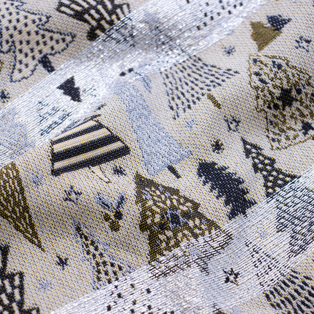 Eleganter Jacquard-Gobelin mit feinen Glitzereffekten und authentischer Leinenoptik. Das festliche Weihnachtsbäume-Muster in Anthrazit verleiht Kissen, Vorhängen und Dekoobjekten zeitlose Eleganz. Die hochwertige Verarbeitung und das edle Farbspiel machen diesen Stoff zur perfekten Wahl für gehobene Inneneinrichtung. Ideal für anspruchsvolle Projekte, die Qualität und Stil vereinen.