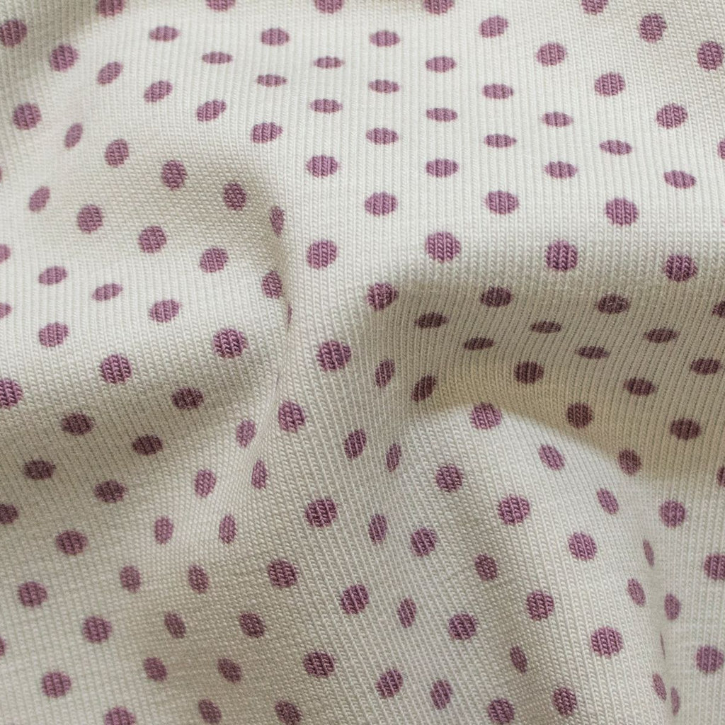Verspielter Baumwoll-Jersey mit charmanten Pünktchen in Lila auf hellgrauem Grund – perfekt für bunte Kinderkleidung, gemütliche Homewear oder verspielte Accessoires. Der weiche, elastische Stoff liegt angenehm auf der Haut und eignet sich ideal zum Nähen von T-Shirts, Kleidern und Pullovern. Mit seinem fröhlichen Muster bringt dieser Jersey Farbe und gute Laune in jedes Nähprojekt. Hochwertige Baumwollqualität für langlebige, tragbare Lieblingsstücke.