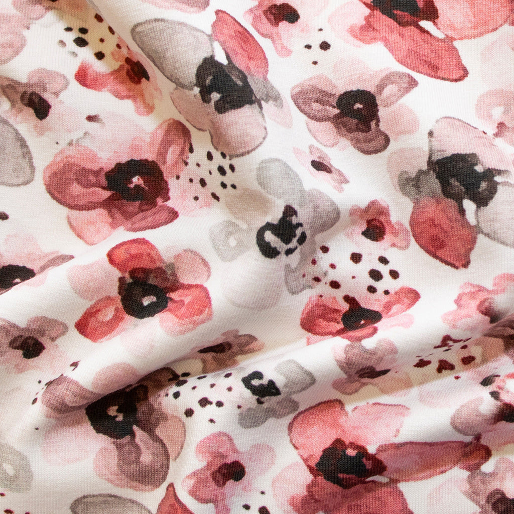 Baumwoll-Jersey der Marke Swafing mit dem charakteristischen Frühjahrsdesign Madrid. Das Muster zeigt zarte Blüten in Weiß und Rosa auf feiner Baumwollbasis – ideal für leichte Kleidungsstücke, Kindertextilien und Accessoires. Der Jersey besticht durch seine weiche Haptik, gute Dehnbarkeit und angenehme Tragekomfort. Perfekt für Näherinnen und Näher, die Wert auf Premium-Stoffe mit zeitlosem Design legen. Swafing steht für verlässliche Qualität und durchdachte Farbkombinationen.