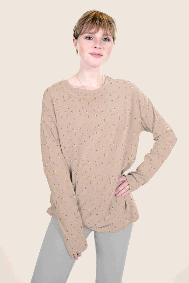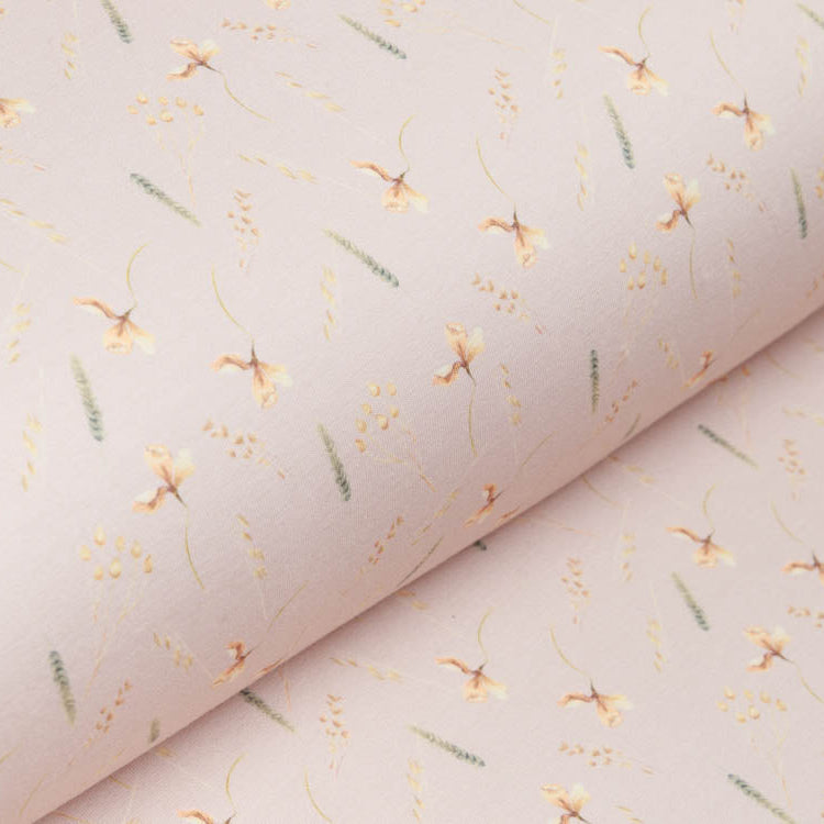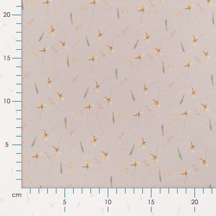 Zartes Jersey mit charmanten Blumen- und Grasmotiven in warmem Pastelllachs – perfekt für gemütliche Kleidungsstücke, die zum Wohlfühlen einladen. Der fließende Stoff schmiegt sich angenehm an die Haut und eignet sich wunderbar für Kleider, Shirts und Loungewear. Mit diesem verspielten Design bringst du Natur-Romantik in deinen Kleiderschrank und sorgst garantiert für Lächeln im Alltag.