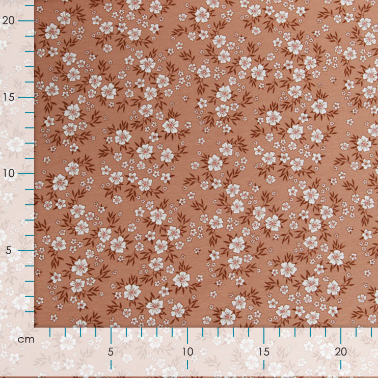 Willkommen in unserem Blumengarten! Dieser wunderbar weiche Jersey besticht mit einem verspielten Blumenmuster in warmem Lachs – perfekt für gemütliche Kleidungsstücke, die zum Wohlfühlen einladen. Die fließende Struktur des Materials macht ihn ideal für T-Shirts, Kleider oder Hoodies, die Bewegungsfreiheit und Komfort bieten. Ein Stoff, der Freude beim Nähen bereitet und garantiert zum Lieblingsstück wird!