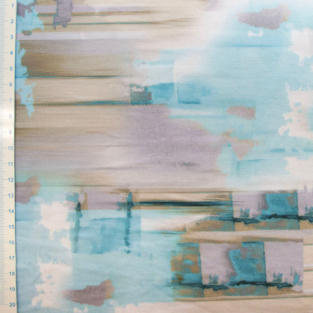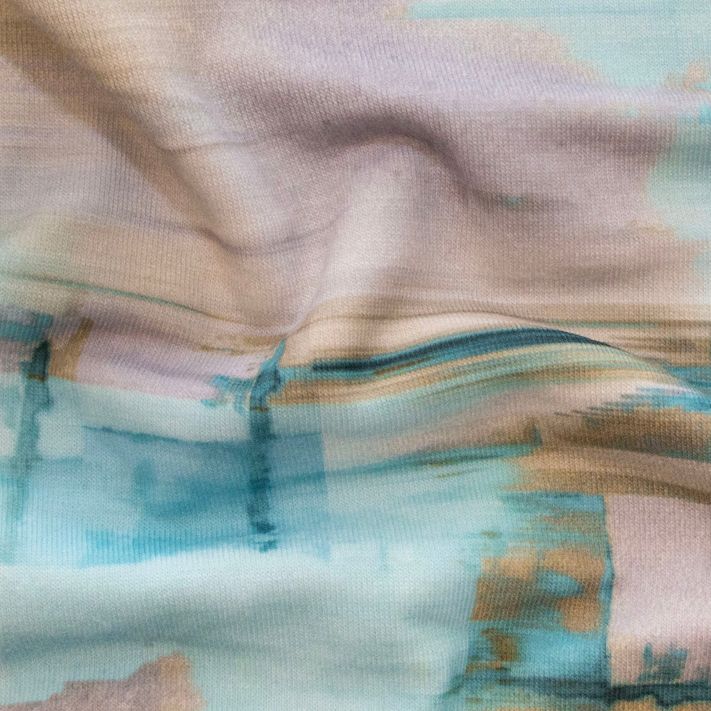 Abstrakte Kunstwerke direkt auf deinem Stoff! Dieser Jersey-Digitaldruck kombiniert elegantes Grau mit lebendigem Türkis in einem fesselnden Muster, das garantiert Blicke auf sich zieht. Der geschmeidige Jersey-Stoff fühlt sich herrlich weich an und bietet maximale Tragekomfort für deine liebsten Projekte. Ob freche T-Shirts, fließende Kleider oder kuschelige Hoodies – dieser Stoff macht jede Kreation zum Statement-Piece. Lass deiner Fantasie freien Lauf!