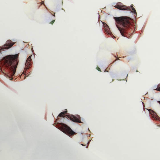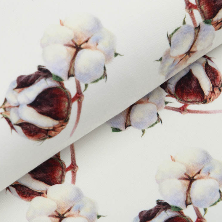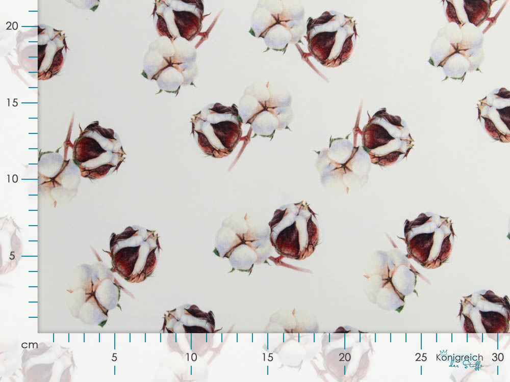 Jersey Baumwolle Digitaldruck Agena – Baumwollknospen in Cremweiß Zartes Cremweiß trifft auf niedliche Baumwollknospen in diesem verspielten Jersey-Digitaldruck. Die geschmeidige Baumwolle bietet maximalen Tragekomfort und macht jedes Projekt zu einem Vergnügen – von luftigen Sommerkleidern bis zu kuschligen Sweats. Der präzise Digitaldruck fängt jede kleine Knospe in feinen Details ein und behält seine Leuchtkraft über viele Wäschen hinweg. Das klassische Cremeweiß passt zu allem und lässt sich wunderbar kombinieren. Ein Stoff, der deine Kreativität weckt und beim Nähen Spaß macht!