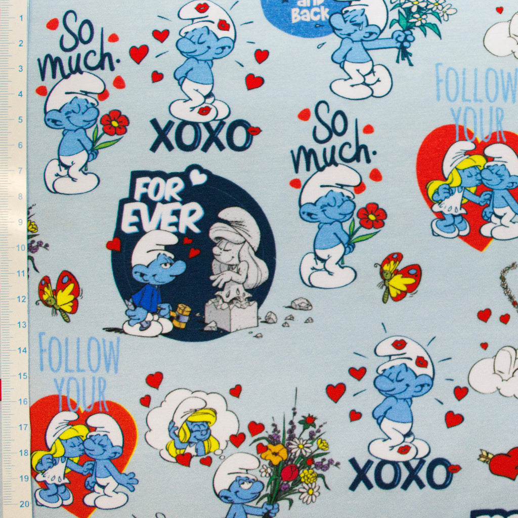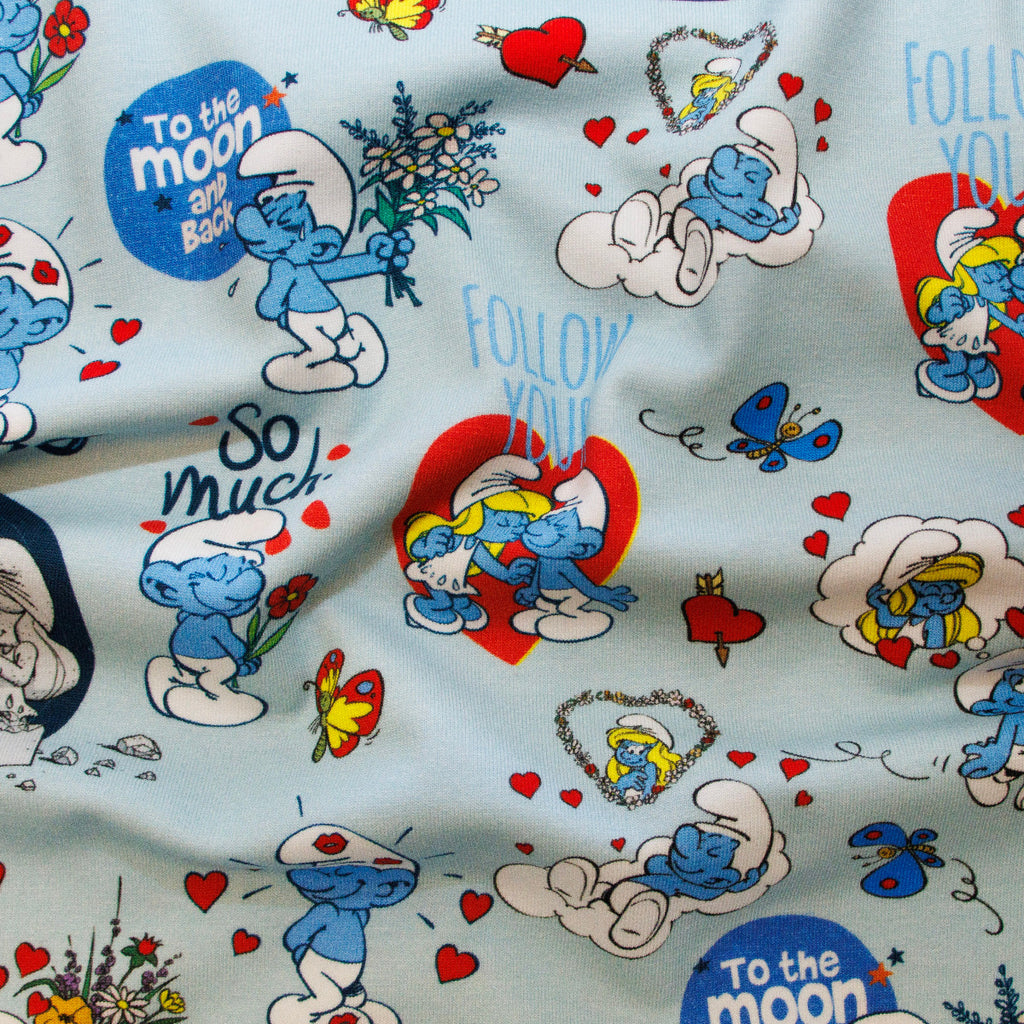 Jersey Digitaldruck mit Schlümpfe-Motiv in Himmelblau Hochwertiger Jersey-Stoff mit digitalgedrucktem Schlümpfe-Design in frischem Himmelblau. Das feinmaschige Gewebe bietet optimale Verarbeitbarkeit und Tragekomfort. Der Digitaldruck ermöglicht detailreiche, farbbrillante Motive mit ausgezeichneter Farbhaftung. Ideal für Kinderkleidung, Patchwork-Projekte und dekorative Näharbeiten. Der elastische Jersey-Charakter gewährleistet Bewegungsfreiheit und angenehmen Sitz. Pflegeleicht und langlebig – ein zuverlässiger Stoff für kreative Nähprojekte mit Charakter.