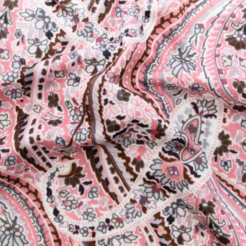 Tauche ein in die faszinierende Welt der Mandalas mit diesem wunderschönen Jersey-Stoff im zarten Rosa! Das aufwendige Digitaldruck-Verfahren bringt das kunstvoll gestaltete Mandala-Muster in beeindruckender Detailgenauigkeit auf den weichen Stoff. Perfekt für kreative Nähprojekte wie gemütliche Shirts, verspielte Kleider oder kuschelige Accessoires. Die hochwertige Drucktechnik sorgt für langlebige, brillante Farben, die auch nach vielen Wäschen nicht verblassen. Lass deiner Fantasie freien Lauf und erschaffe etwas Einzigartiges mit diesem traumhaften Stoff!