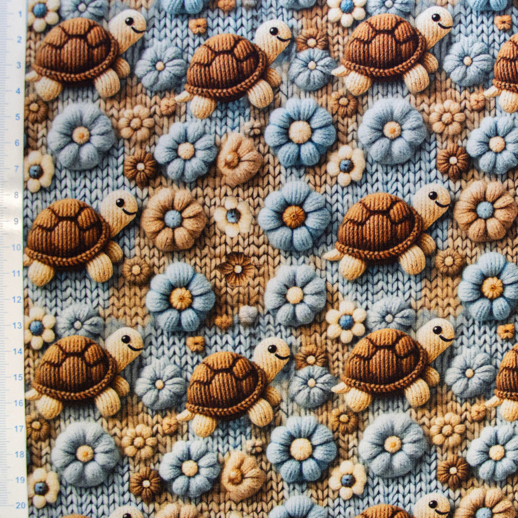 Niedliche Schildkröten erobern diesen hochwertigen Jersey im charmanten Beige-Blau-Design! Der Digitaldruck besticht durch lebendige Farben und feine Details, die diesen Stoff zu einem echten Hingucker machen. Perfekt für verspielte Kinderkleidung, gemütliche Pyjamas oder bunte Accessoires. Der weiche Jersey bietet maximalen Tragekomfort und ist ideal für Nähprojekte, die Freude bereiten. Ein Stoff, der Kinderherzen höher schlagen lässt!