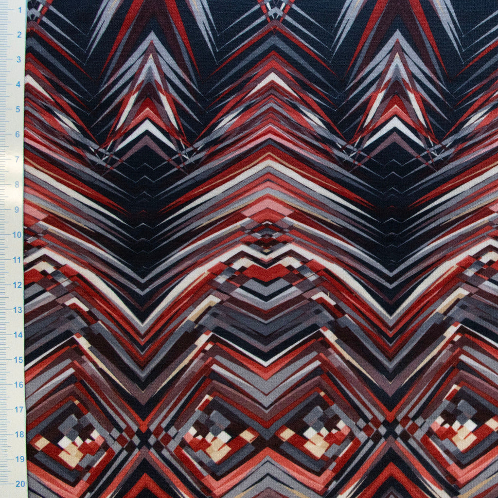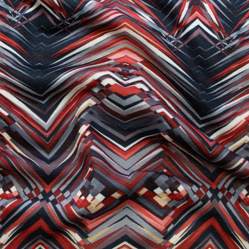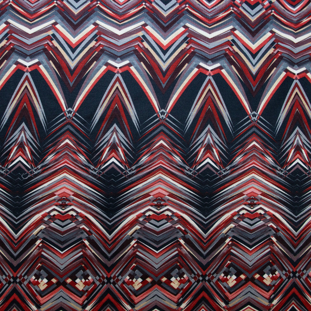 Dieser lebendige Jersey besticht durch sein dynamisches Zick-Zack-Muster in kräftigem Dunkelblau und leuchtendem Rot. Der hochwertige Digitaldruck sorgt für gestochen scharfe Konturen und intensive Farbbrillanz, die auch nach vielen Wäschen erhalten bleiben. Der weiche, elastische Jersey-Stoff schmiegt sich angenehm an und eignet sich perfekt für verspielte Kleidungsstücke, die Bewegungsfreiheit und Tragekomfort vereinen. Ideal für Kindermode, Freizeitkleidung oder Statement-Pieces mit Charakter.