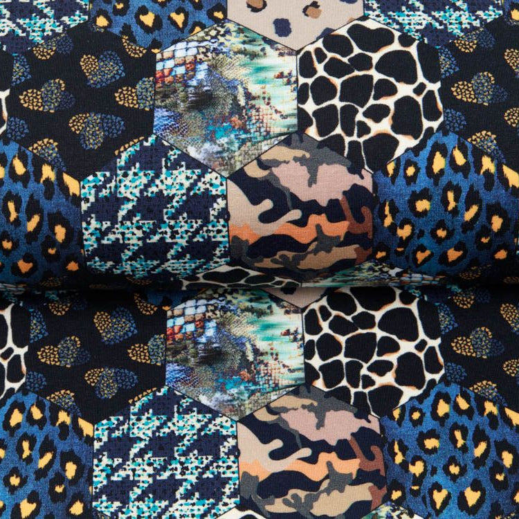 Geometrische Eleganz trifft auf Tragekomfort! Dieser hochwertige Jersey besticht durch sein modernes Sechseck-Muster in den zeitlosen Farbtönen Schwarz und Schlamm. Der feine Digitalprint von Stenzo sorgt für gestochen scharfe Details und lebendige Farben, die auch nach vielen Wäschen erhalten bleiben. Das weiche, elastische Material schmiegt sich angenehm an und eignet sich perfekt für Kleidungsstücke, die Bewegungsfreiheit und Style vereinen – von lässigen Shirts bis zu modernen Accessoires. Ein Stoff, der Kreativität mit praktischem Tragekomfort verbindet.