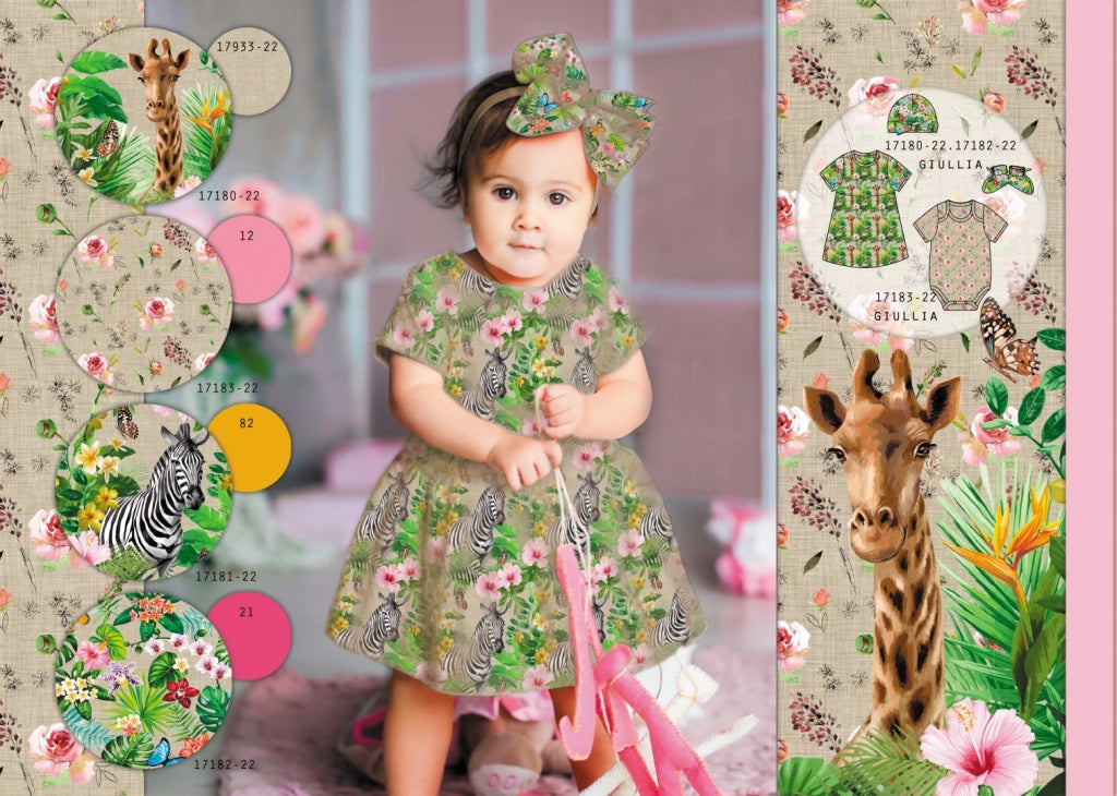 Bunte Giraffen und verspielt angeordnete Blätter tanzen über diesen weichen Jersey-Stoff – perfekt für Kinderkleidung, die zum Lachen bringt! Die moderne Kratzoptik verleiht dem Digitalprint eine besondere Tiefenwirkung, während der elastische Jersey-Stoff sich angenehm an kleine Körper schmiegt. Ideal für T-Shirts, Hoodies und Hosen, die Kinder gerne tragen. Ein Stoff, der Fantasie und Komfort vereint.