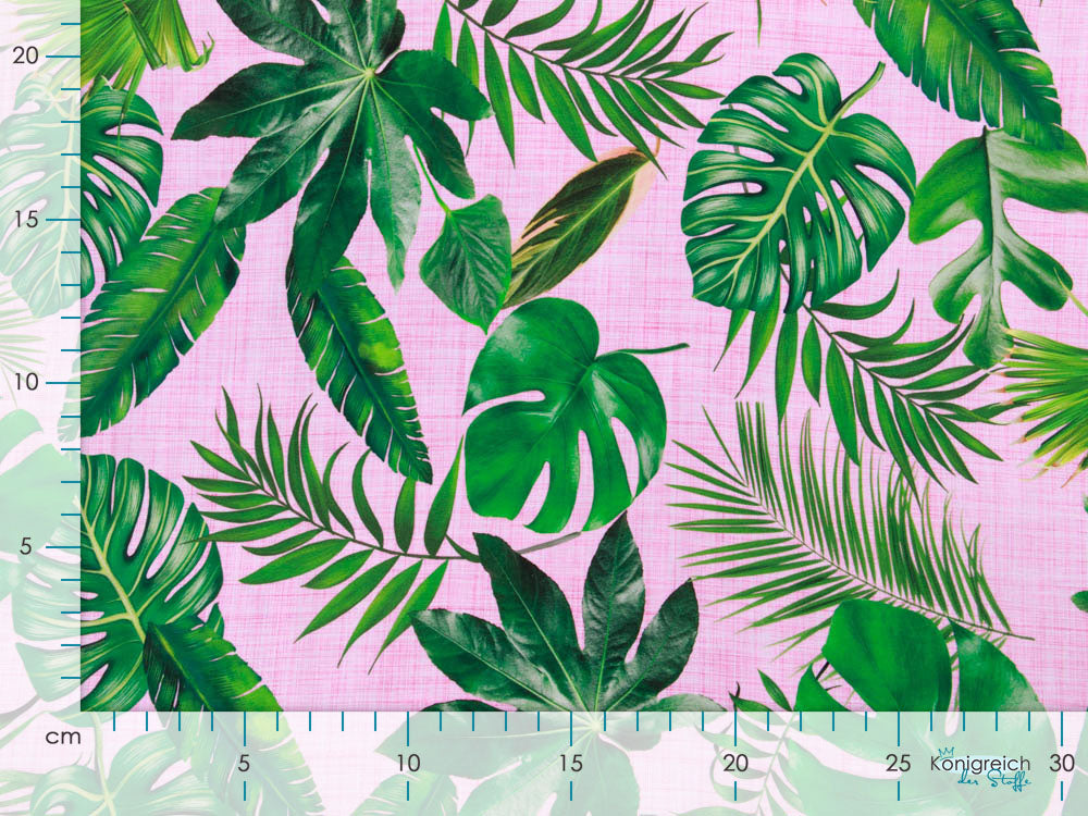 Exotische Palmenblätter in verschiedenen Grüntönen sprießen über diesen einzigartigen Jersey-Stoff und schaffen sofort Urlaubsfeeling. Die raffinierte Kratzoptik verleiht dem Digitalprint von Stenzo eine besondere Textur und Tiefenwirkung – als würde man die Blätter fast anfassen können. Der geschmeidige Baumwoll-Jersey eignet sich wunderbar für sommerliche Kinderkleidung, Taschen oder gemütliche Loungewear. Ein Stoff, der Abenteuerlust weckt und beim Nähen Freude bereitet.