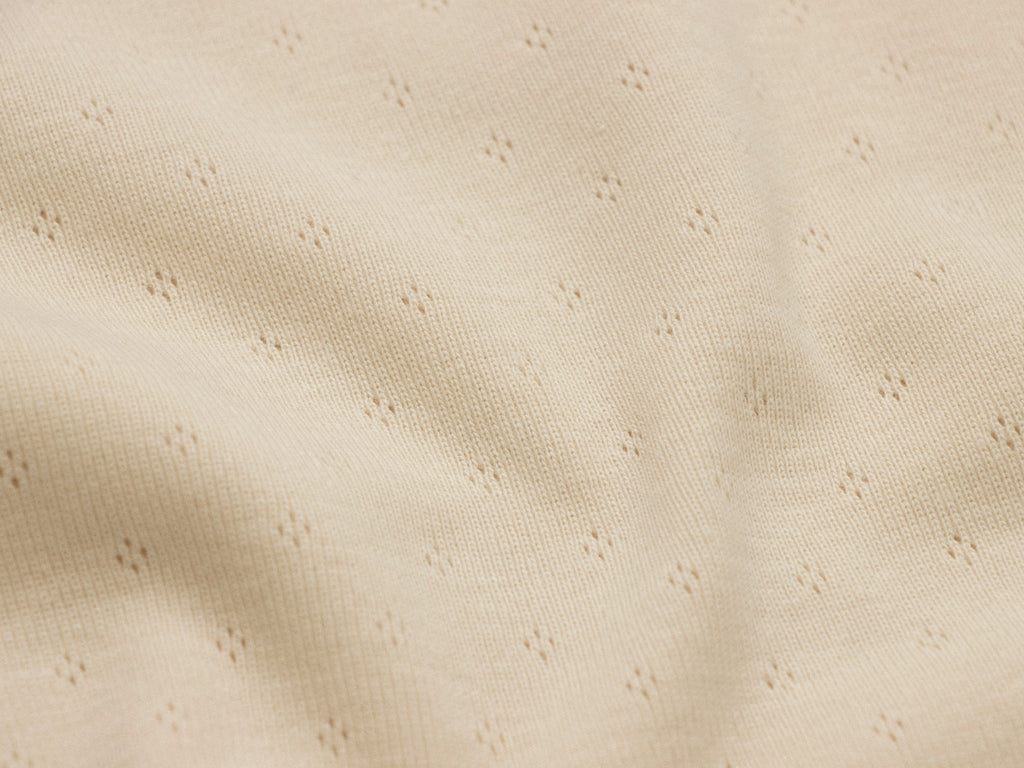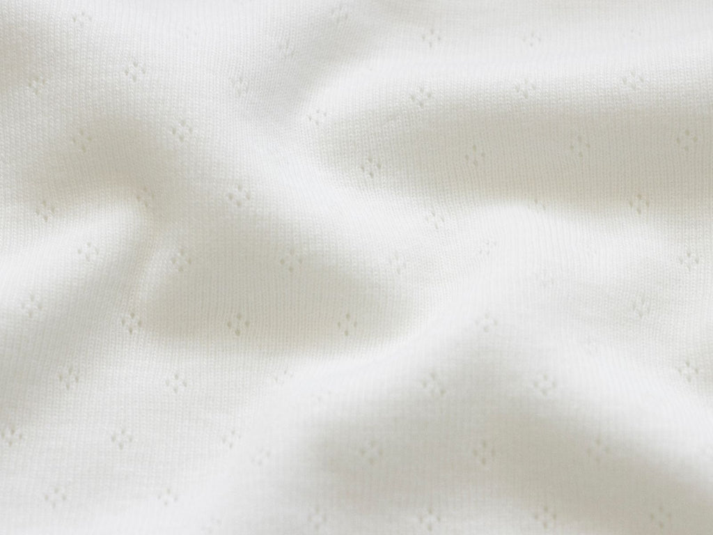 Dieser bezaubernde Jersey aus reiner Baumwolle überzeugt mit seinem feinen Rauten-Lochmuster. Ideal geeignet für die Herstellung von Babybekleidung, Kleidern, T-Shirts, Schlafanzügen und vielen weiteren Kleidungsstücken.