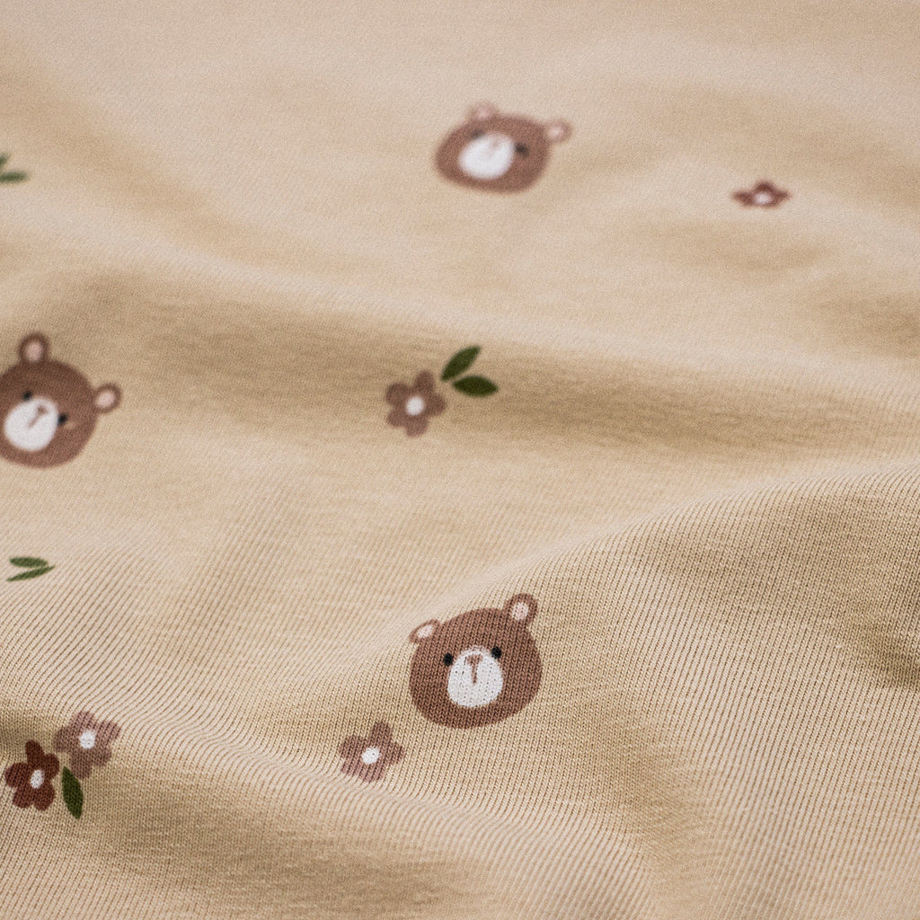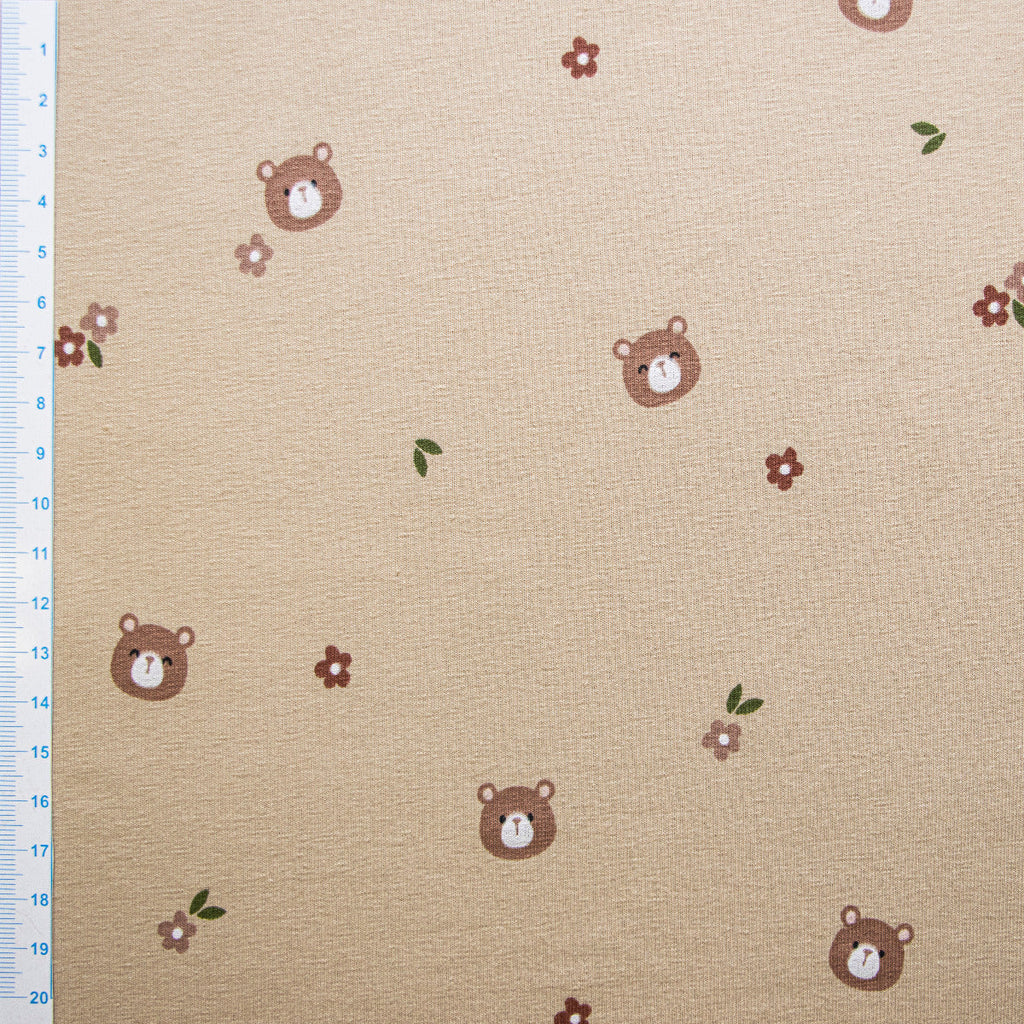 Niedliche Bärchen mit frechen Gesichtsausdrücken tanzen über diesen weichen Jersey-Stoff in warmem Schlamm-Ton. Das verspielte Design bringt Charakter in jedes Nähprojekt – perfekt für Kinderkleidung, Kuscheldecken oder bunte Accessoires. Der angenehme Jersey-Stoff liegt herrlich weich auf der Haut und eignet sich ideal für Anfänger und erfahrene Näher gleichermaßen. Lassen Sie sich von den lustigen Bärgesichtern inspirieren und erschaffen Sie etwas Besonderes!