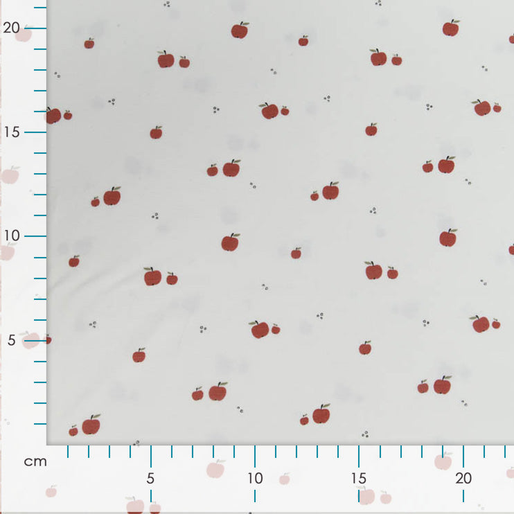 Dieser fröhliche Jersey besticht mit einem charmanten Apfel-Muster auf wollweißem Grund – perfekt für alle, die es frisch und verspielt mögen. Der weiche, elastische Stoff schmiegt sich angenehm an und eignet sich wunderbar für Shirts, Kleider und Kinderkleidung. Mit seinem zeitlosen Design bringt dieser Jersey Farbe in jeden Kleiderschrank und lässt sich mühelos kombinieren. Ein Stoff, der gute Laune macht!