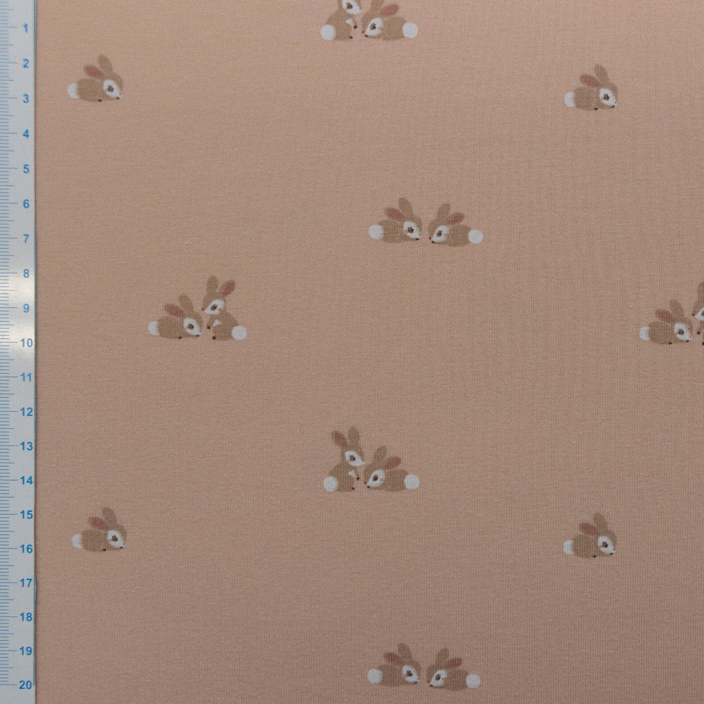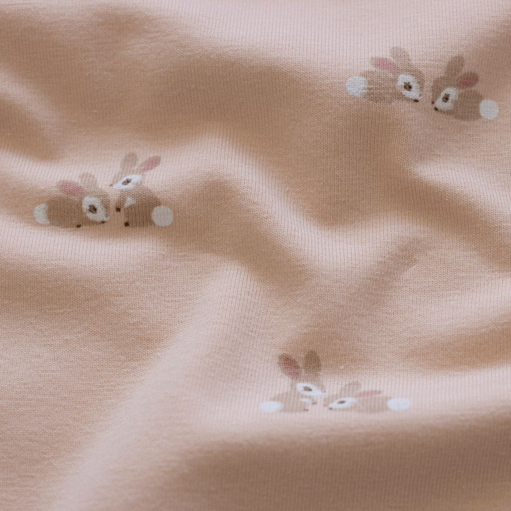 Ein herzerwärmendes Muster für kleine Näher und ihre liebsten Projekte! Dieser kuschelige Jersey-Stoff ist dein perfekter Partner für Kinderbekleidung: süße T-Shirts, gemütliche Kleider, Schlafanzüge und flauschige Hoodies. Die niedliche Hasenfamilie in leuchtendem Korallenton bringt Wärme und Geborgenheit in jedes Nähprojekt – zum Kuscheln und Liebhaben. Der elastische Stoff sitzt herrlich bequem, ist robust und pflegeleicht – ideal für den Alltag aktiver Kinder. Egal ob Nähanfänger oder kleine Profis: dieser Stoff verzeiht großzügig und macht jedes Projekt zum Erfolg. Ein Material, das Kinderherzen erfreut und Nähen zum schönsten Abenteuer macht!