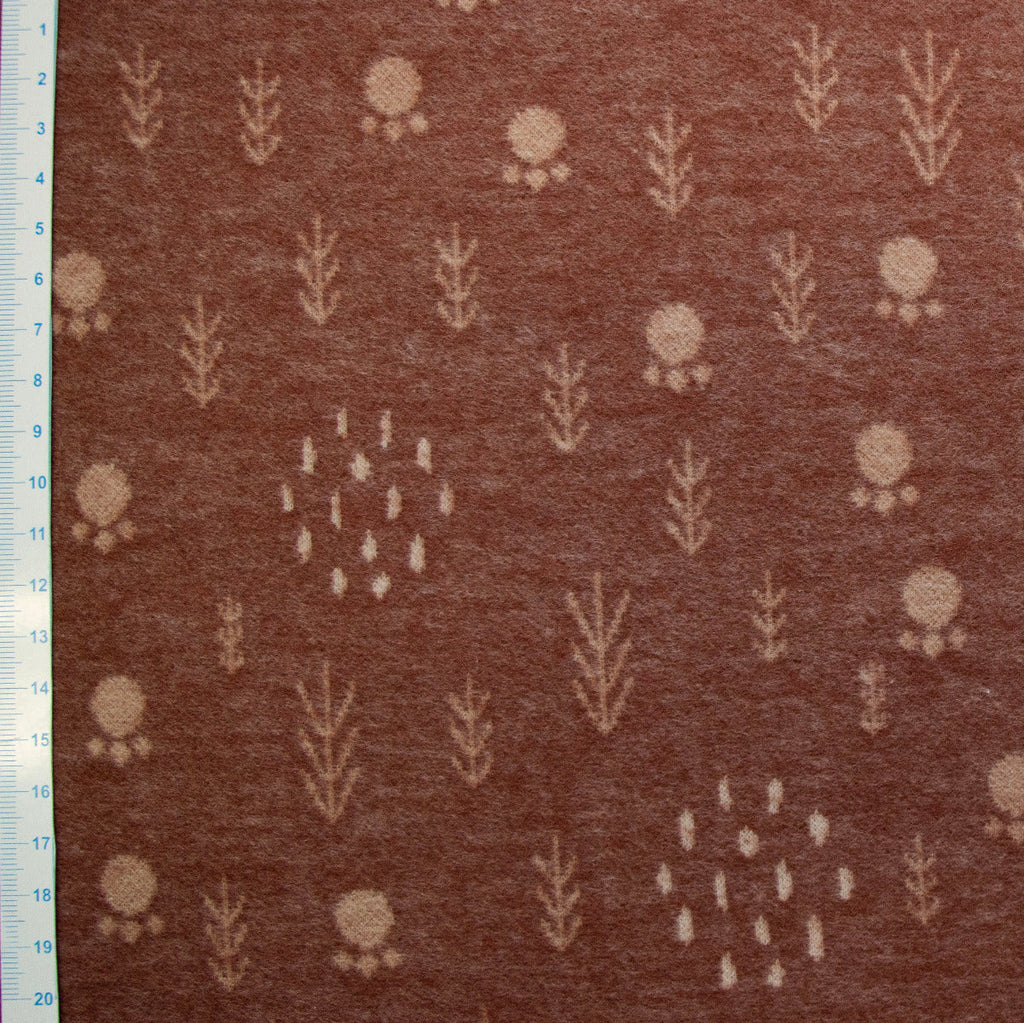 Dieser wunderbar weiche Baumwoll-Jersey besticht durch sein charmantes Waldmuster in warmem Rotbraun. Das feine Jacquard-Gewebe verleiht dem Stoff eine elegante Struktur und angenehme Griffigkeit. Perfekt für gemütliche Kinderkleidung, kuschelige Accessoires oder verspielte Heimtextilien. Die hochwertige Baumwolle sorgt für Atmungsaktivität und Tragekomfort – ideal für empfindliche Haut. Ein Stoff, der Natur und Gemütlichkeit in jedes Projekt bringt.