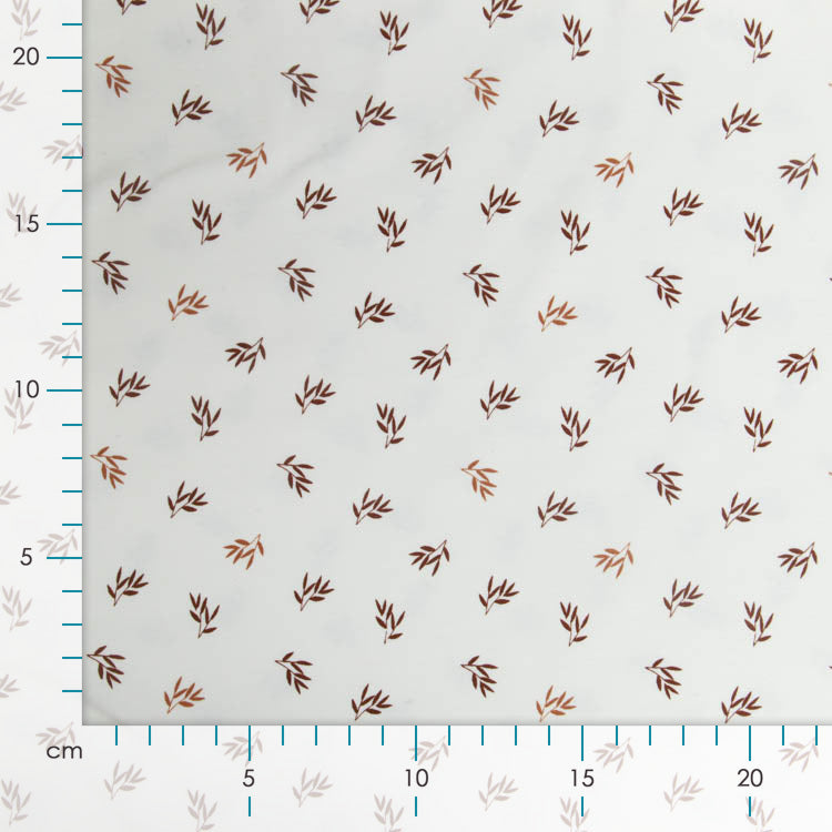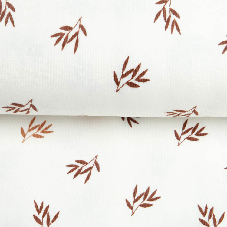 Zartes Jersey mit charmanten kleinen Zweigen – perfekt für gemütliche Lieblingsstücke! Das wollweiße Grundgewebe schafft eine warme, natürliche Basis, während die feinen Zweigmuster dem Stoff eine verspielt-organische Note verleihen. Ideal für Shirts, Kleider oder Hoodies, die Komfort und Charakter vereinen. Ein Stoff, der zum Träumen einlädt!