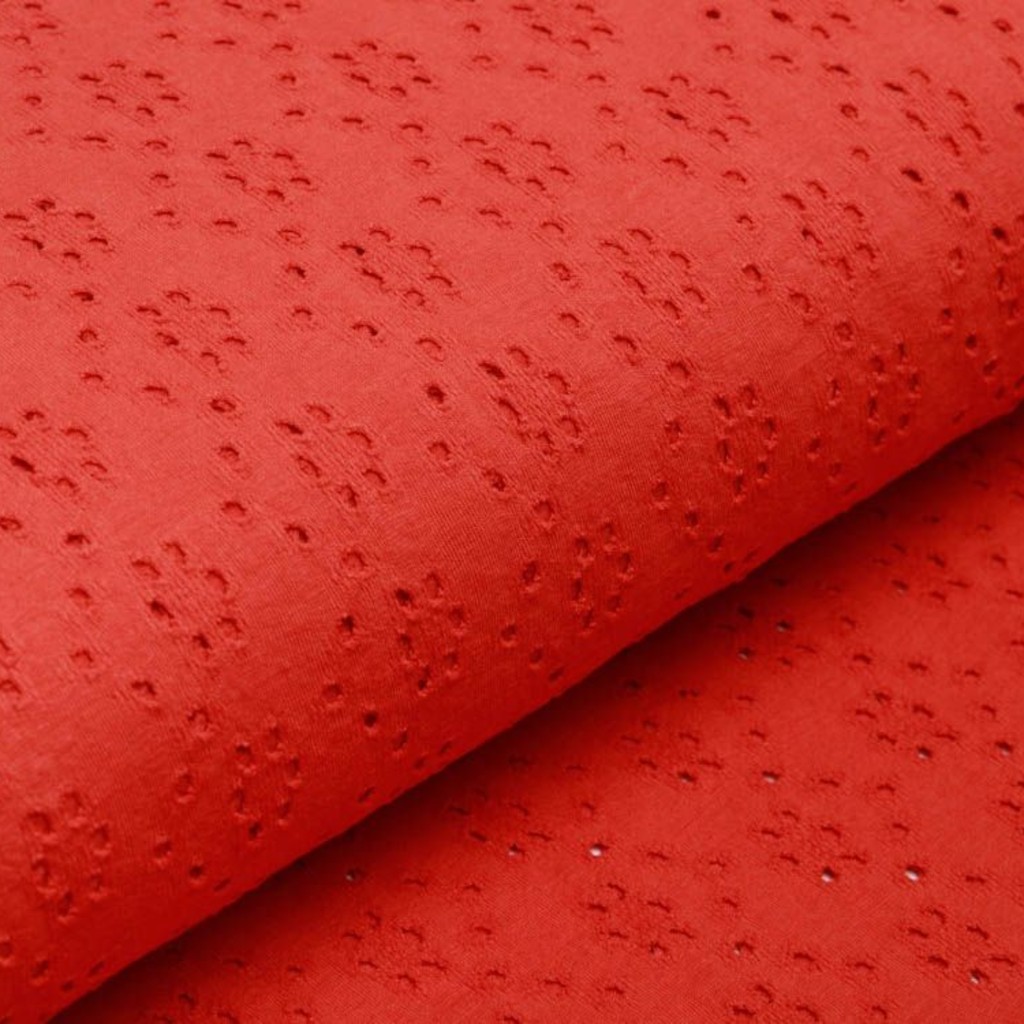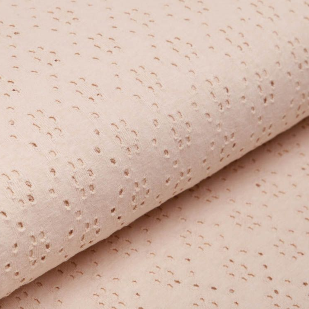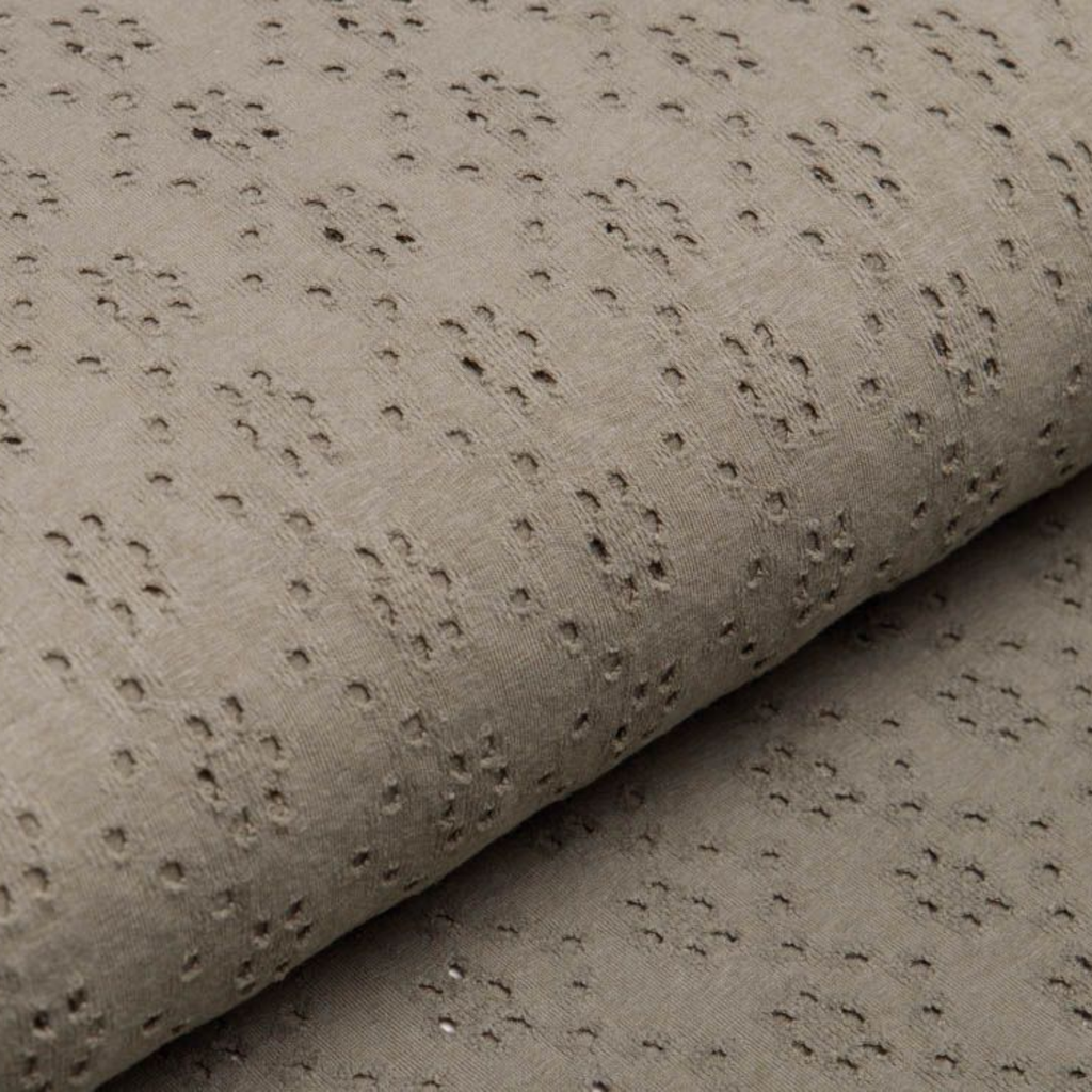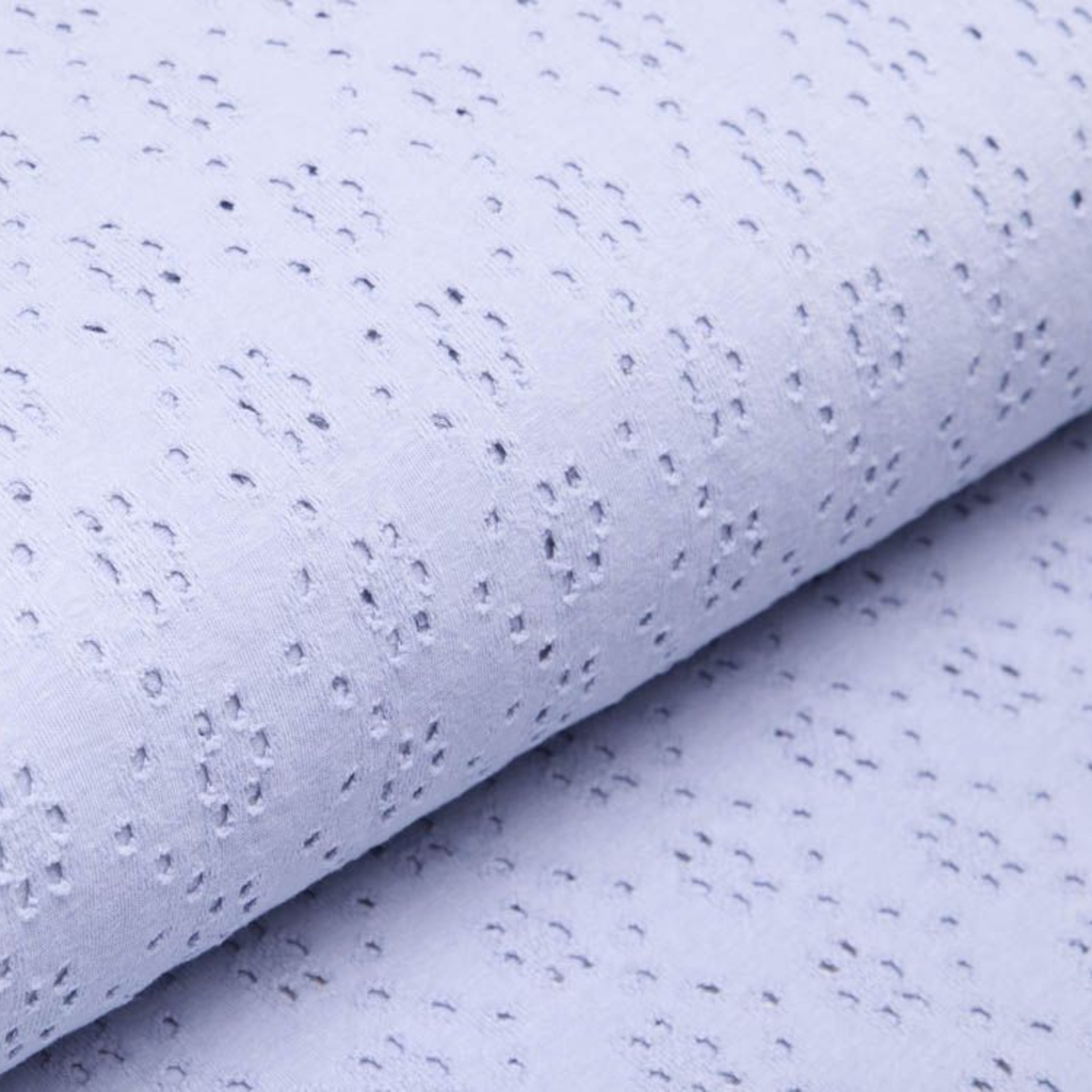Jersey mit zartem Blumenmuster und feiner Lochstickerei – das perfekte Material für verspielte Sommerkleider, luftige Blusen oder gemütliche Homewear. Die Broderie-Details verleihen jedem Projekt eine romantische Note, während der elastische Jersey-Stoff angenehm sitzt und sich wunderbar verarbeiten lässt. Ideal für alle, die ihren Kreationen einen Hauch von Eleganz und Verspielheit schenken möchten.