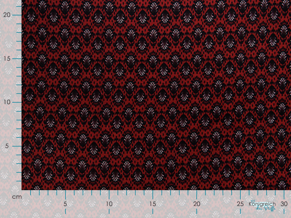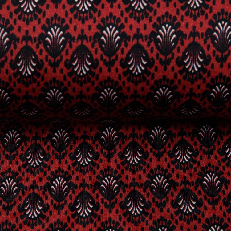 Dieser fließende Jersey Modal besticht durch sein verspieltes abstraktes Blättermuster in tiefem Weinrot – perfekt für Kleidungsstücke, die Bewegungsfreiheit und Eleganz vereinen. Die Modal-Faser sorgt für sanfte Haptik und natürliche Atmungsaktivität, während das moderne Muster jedem Projekt eine künstlerische Note verleiht. Ob für Kleider, Shirts oder Accessoires – dieser Stoff bringt Farbe und Charakter in deine Kreationen.