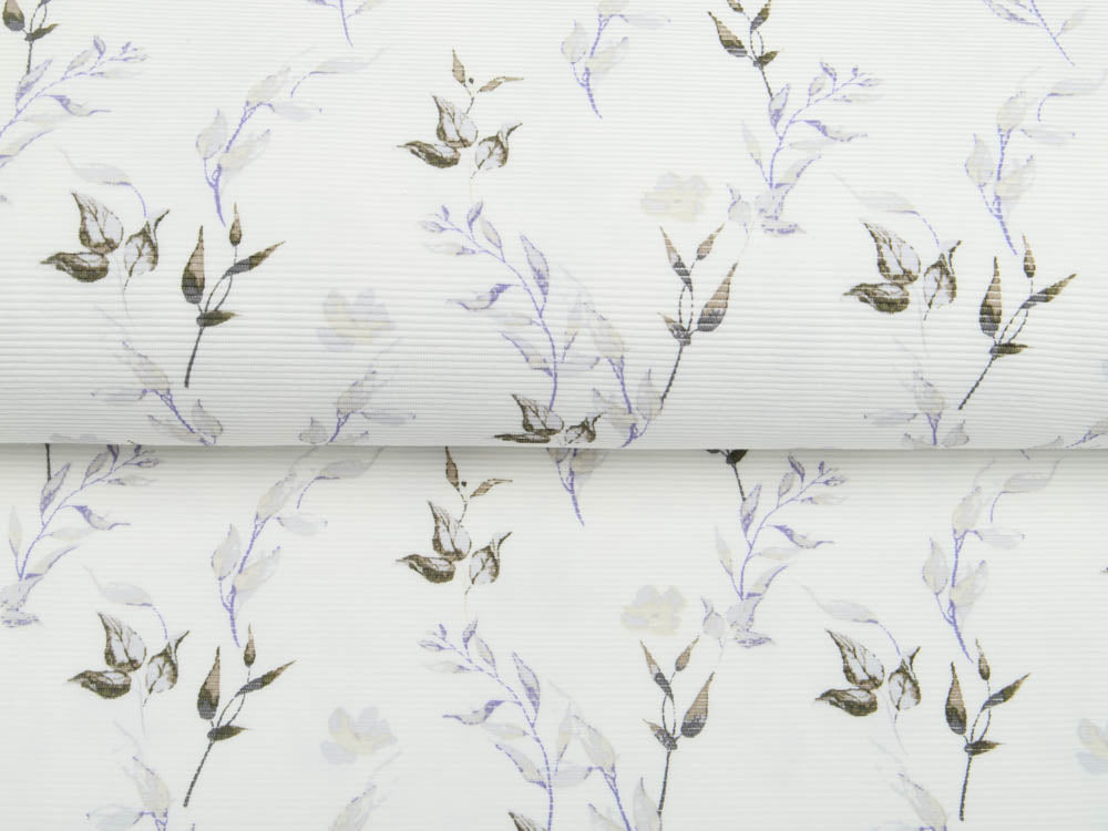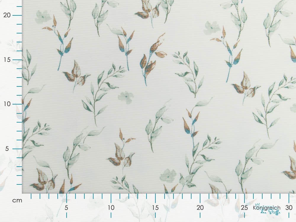 Jersey OTTOMAN – Querrippe – Aquarelle-Herbstzweige Dieser vielseitige Jersey mit charakteristischer Querrippenstruktur besticht durch sein wunderschönes Aquarelle-Herbstzweige-Muster und eignet sich hervorragend für anspruchsvolle Kinderbekleidung. Die elastische Rippenstruktur bietet optimalen Tragekomfort und Bewegungsfreiheit für aktive Kinder. Das botanische Muster verbindet zeitlose Eleganz mit kindgerechtem Design und schafft eine perfekte Balance zwischen Ästhetik und Funktionalität. Der Stoff ist langlebig und robust – ideal für hochwertige Kindermode, die intensiv getragen wird und mehrere Generationen halten kann.