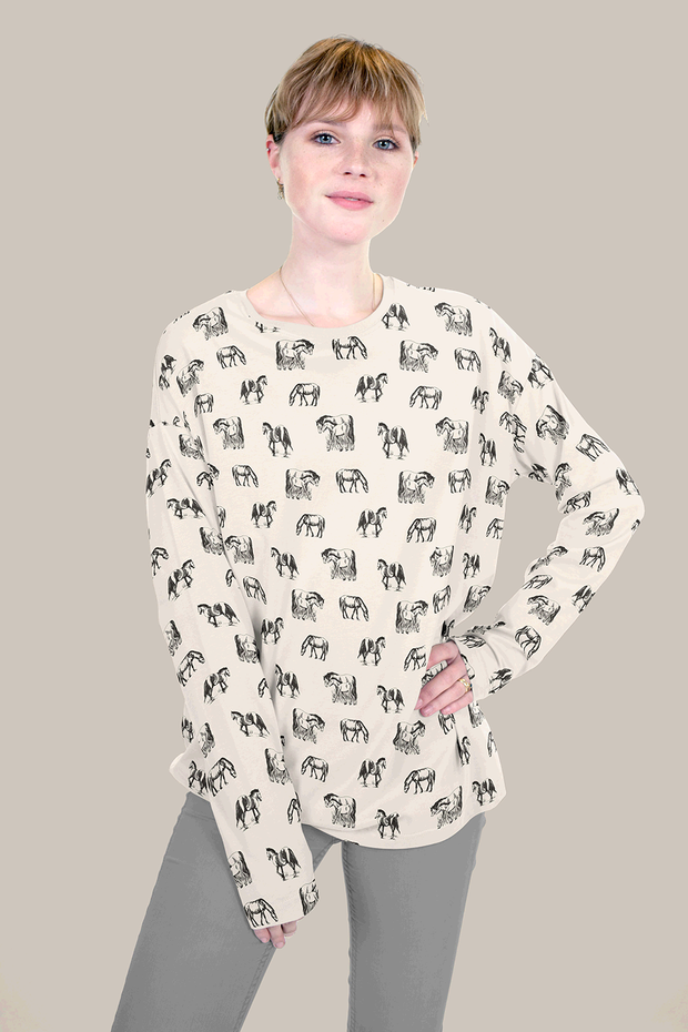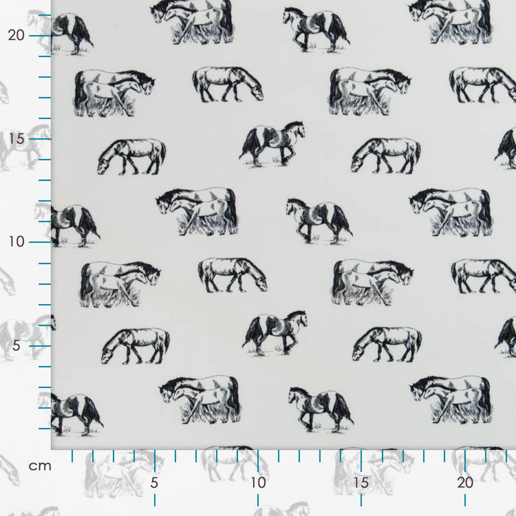 Niedliche Pferdefamilie trifft auf gemütlichen Jersey – perfekt für kleine Träumer und Pferdefreunde! Dieser weiche Stoff in warmem Wollweiß besticht durch sein charmantes Motiv mit Mama-, Papa- und Babypferd. Ideal für Kinderkleidung, Kuscheldecken oder Accessoires, die Freude bereiten. Der angenehme Jersey-Stoff schmiegt sich sanft an die Haut und verspricht maximalen Tragekomfort. Lassen Sie Ihrer Kreativität freien Lauf und erschaffen Sie etwas Besonderes für die Lieblinge in Ihrem Leben!