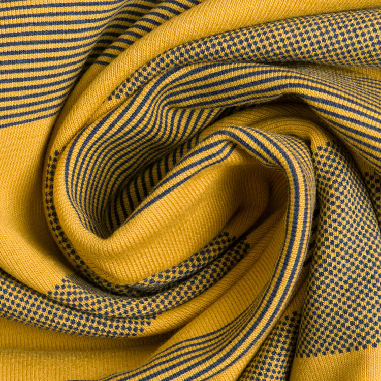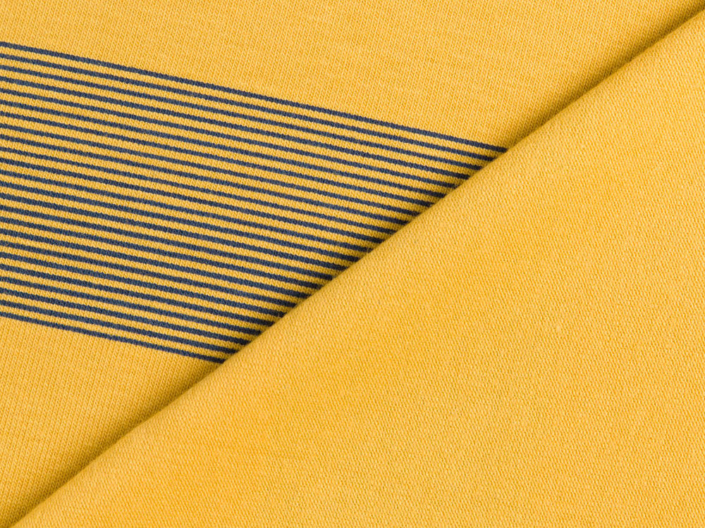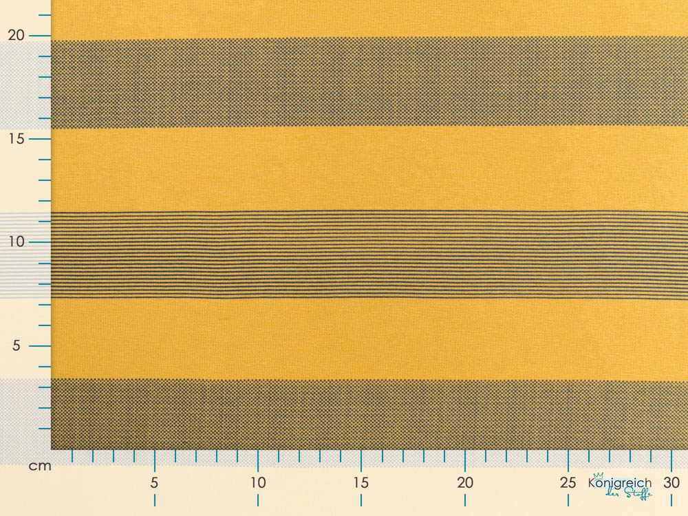 Jersey Sam – breite Streifen in Ocker und Grau Dieser vielseitige Jersey besticht durch sein klassisches Streifenmuster in warmen Ocker- und Grautönen. Die breiten Streifen verleihen dem Stoff Charakter und Bewegung, während die harmonische Farbkombination zu zahlreichen Projekten passt. Ob für gemütliche Shirts, Kleider oder Accessoires – dieser Jersey ist dein zuverlässiger Begleiter für kreative Nähideen. Die angenehme Stoffqualität sorgt für Tragekomfort und Langlebigkeit.
