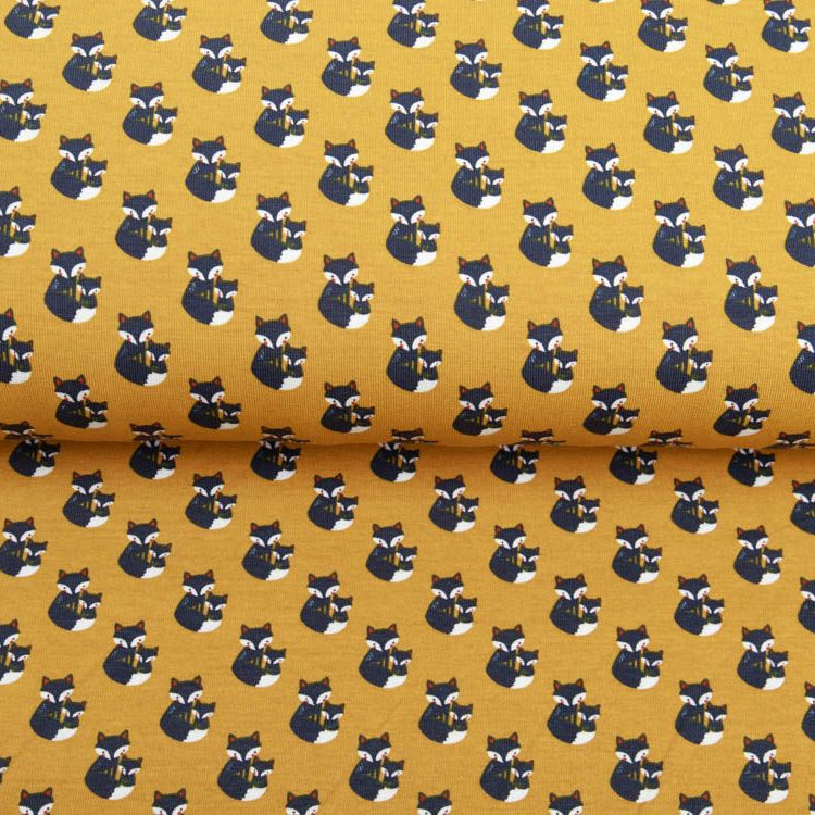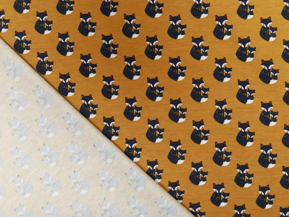 Entdecke diesen charmanten Jersey mit einer verspielten Fuchsfamilie vor warmem Ocker-Hintergrund. Das Design bringt Waldmagie in deine Nähprojekte – perfekt für Kinderkleidung, Kuscheldecken oder gemütliche Accessoires. Der weiche Jersey-Stoff liegt angenehm auf der Haut und lässt sich leicht verarbeiten. Ideal für alle, die Natur-Motive und warme Farbtöne lieben. Lass deine Kreativität laufen und schaffe etwas Besonderes!