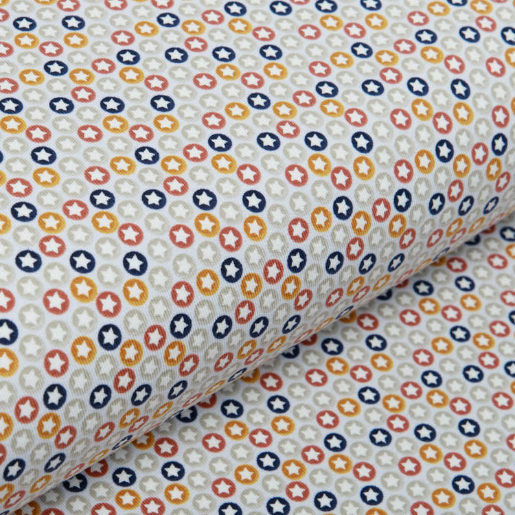 Himmlische Sterne tanzen in verspielten Kreisen auf diesem wunderbar weichen Jersey – perfekt für Kinderkleidung, Patchwork-Projekte oder gemütliche Heimtextilien. Das helle Grau schafft eine beruhigende Atmosphäre, während das charmante Sternenmuster Fantasie und Freude weckt. Dieser vielseitige Stoff lässt sich mühelos verarbeiten und ist ideal für alle, die ihren Kreationen einen Hauch von Magie verleihen möchten.