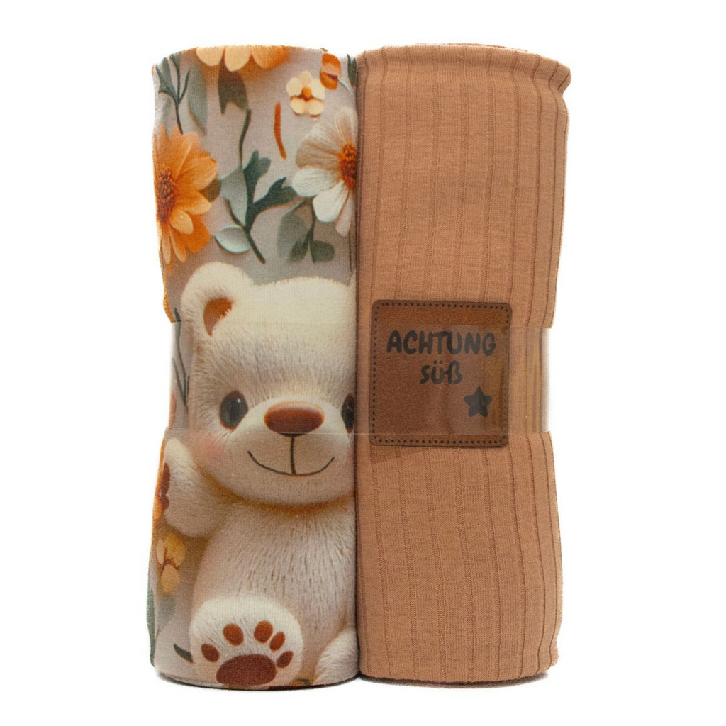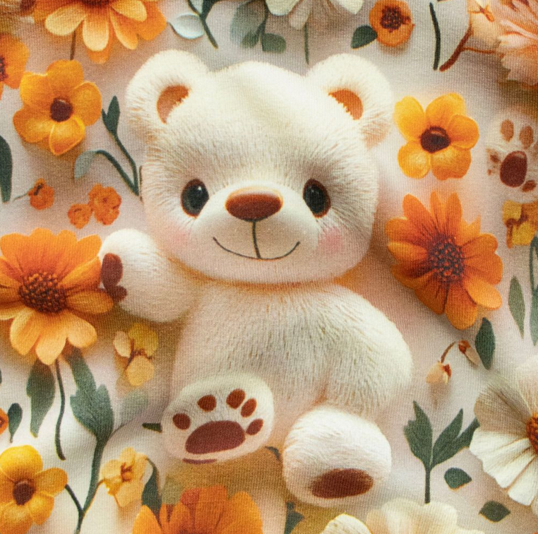 Das liebevoll zusammengestellte Paket eignet sich perfekt für niedliche Nähprojekte wie Kinderkleidung, Accessoires oder Dekorationen. Der Stoff überzeugt durch sein verspieltes Design mit süßen Bärenmotiven.