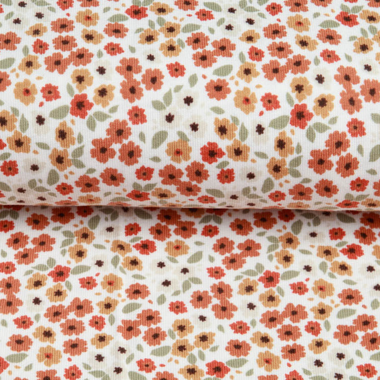 Jersey-Stoff mit verspieltem Streublümchen-Muster in zartem Wollweiß – perfekt für gemütliche Kleidungsstücke mit Charme. Das weiche Material schmiegt sich angenehm an die Haut und eignet sich ideal für Shirts, Kleider oder Hoodies. Das niedliche Blumenmotiv verleiht jedem Projekt eine verspielte Note und bringt Frische in deine Nähkiste. Ein Klassiker für alle, die es romantisch und kuschelig lieben!
