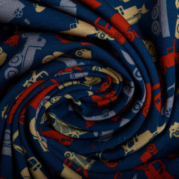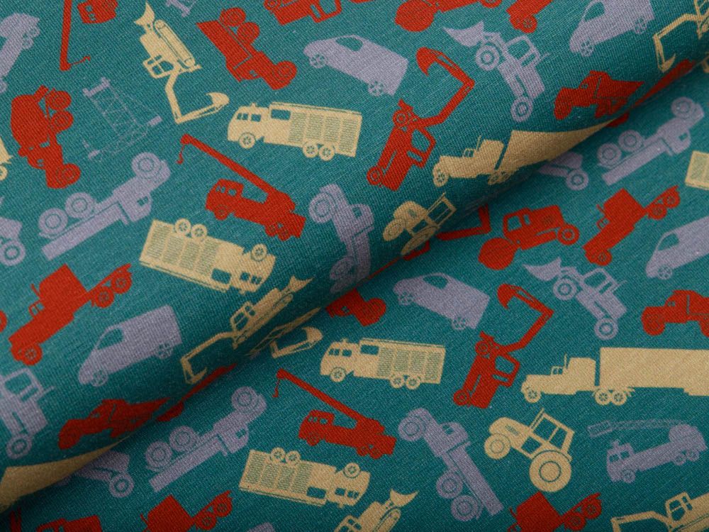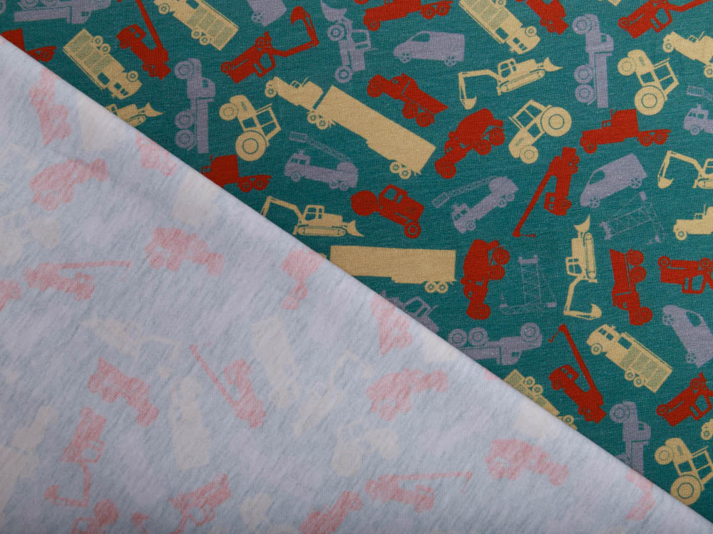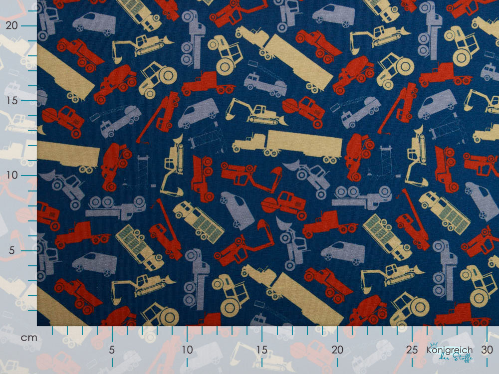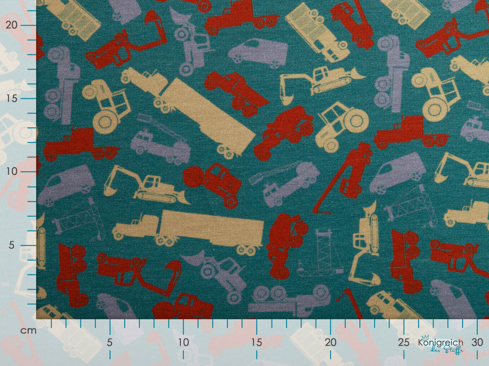 Bunte Baufahrzeuge für kleine Träumer Dieser fröhliche Jersey-Stoff bringt die Welt der Baumaschinen ins Kinderzimmer! Mit bunten Baggern, Kränen und Lastwagen begeistert das Swafing-Design kleine Baumeister und Fahrzeugfans. Der weiche Jersey-Stoff eignet sich perfekt für Kinderkleidung, Bettwäsche oder kuschelige Accessoires. Die lebendigen Farben und detailreichen Motive machen jeden Schnitt zum Lieblingsstück – ob Shirt, Hose oder Kissenbezug. Ein Must-have für alle, die Baufahrzeuge lieben!